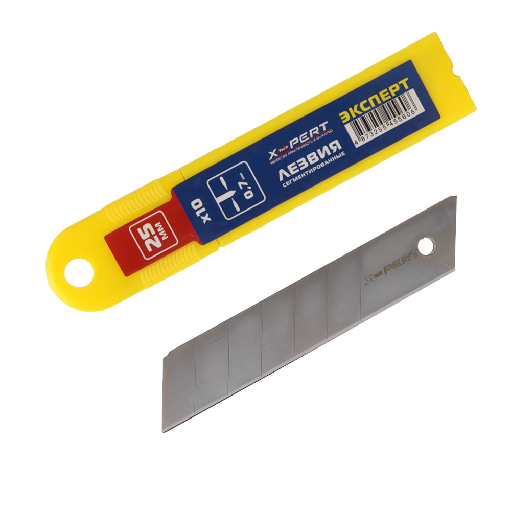 Лезвия для ножа 25 мм широкие 10 шт - используются в строительстве и ремонте. Данные лезвия очень удобны и существенно экономят время на заточку инструмента - при затупливании лезвия необходимо просто отломить старый сегмент и можно работать дальше.