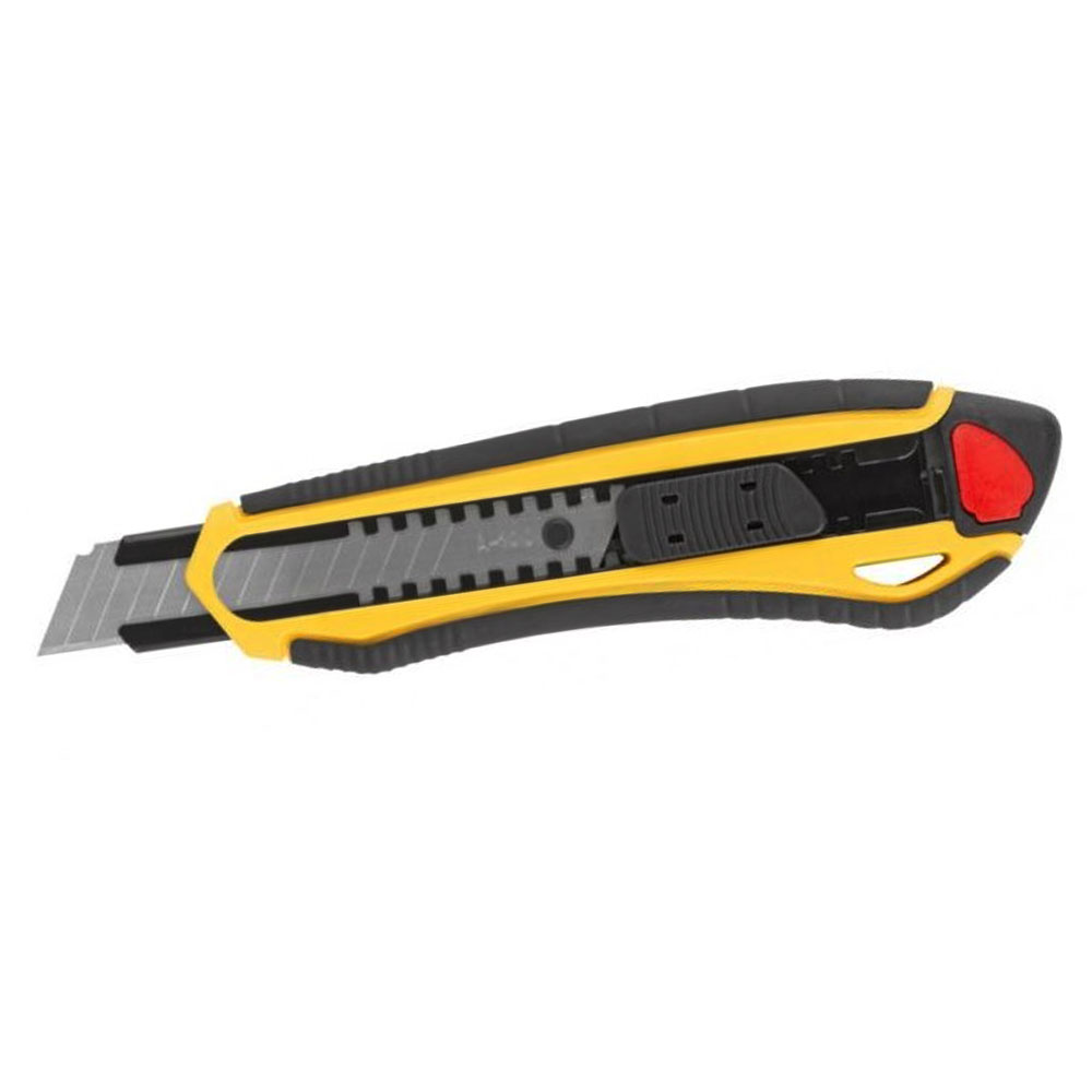 Нож 18 мм усиленный FIT - имеет металлическую направляющую с двусторонней автофиксацией для усиления конструкции. Острозаточенное лезвие из высокоуглеродистой инструментальной стали позволяет резать широкий спектр материалов. Корпус изготовлен из ударопрочного ABS-пластика и дополнительно усилен металлической направляющей, что позволяет фиксировать лезвие в ровном положении.