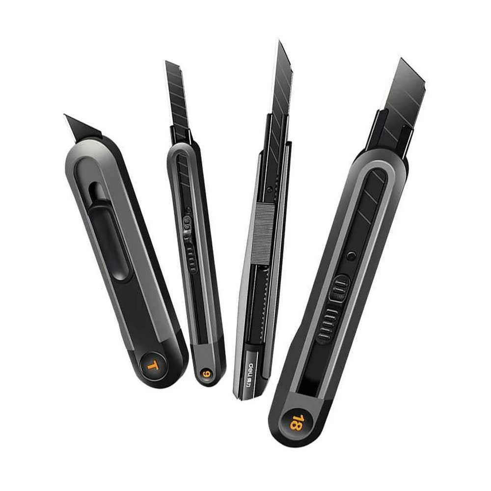 Нож 9 мм Deli НТ4009, применяется для реза бумаги, картона, линолеума и других материалов. Лезвие выполнено из качественной стали SK2, благодаря чему отличается исключительной надежностью и остротой и легко меняется при необходимости. Корпус со специальным покрытием Soft Touch обеспечивает комфортную эксплуатацию, стойкость к атмосферным явлениям и образованию сколов и трещин. Эксклюзивный дизайн - изящный, но одновременно строгий и современный - уделяет внимание каждой детали. Нож упакован в стильную картонную коробку и будет отличным подарком для любителей качественного, современного инструмента.