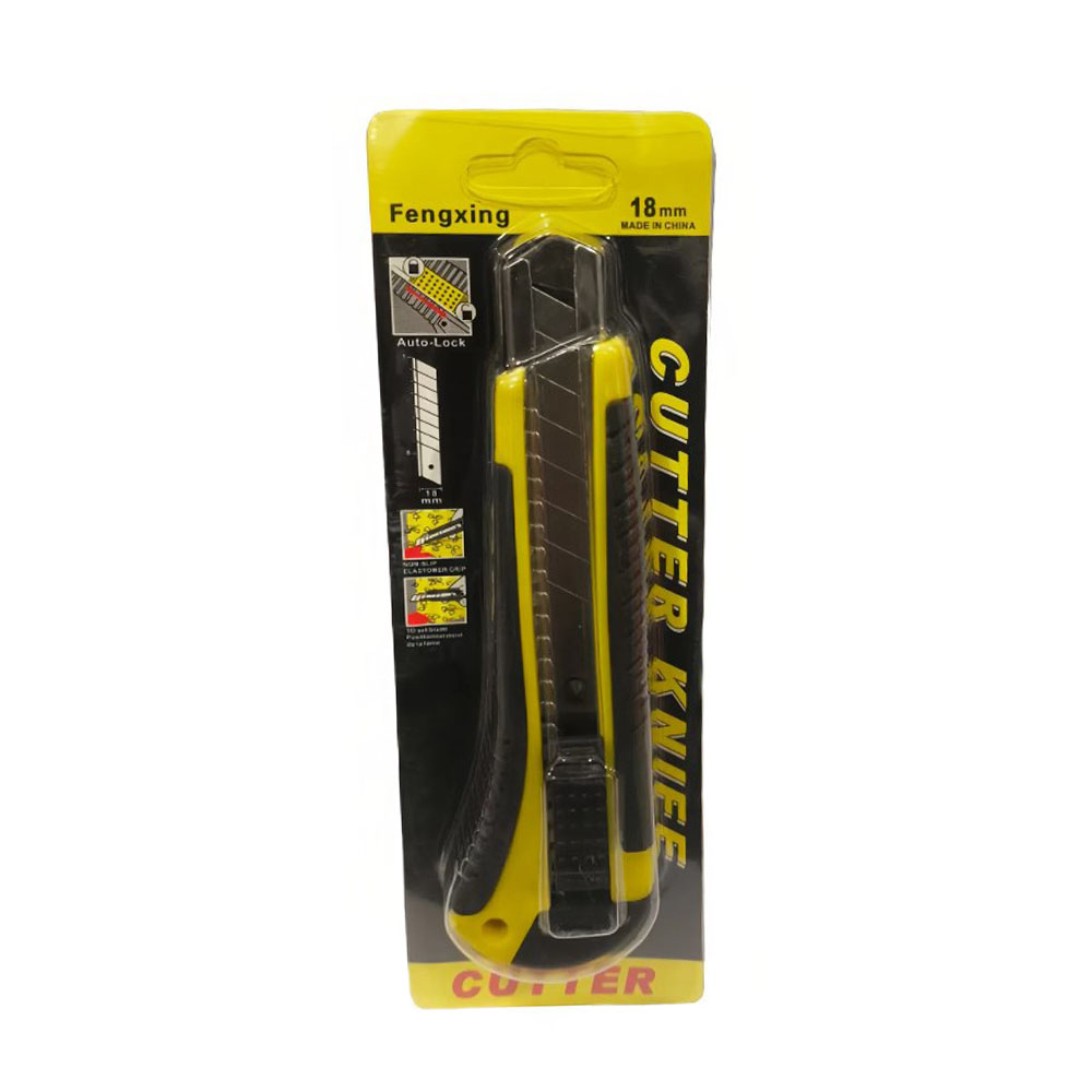 Нож малярный 18 мм Сutter Knife - имеет пластиковый обрезиненный корпус, усиленный металлической направляющей. Отламывающееся лезвие из инструментальной стали. Подходит для резки обоев, кожи, линолеума, гипсокартонных и гипсолитовых плит, бумаги, картона.