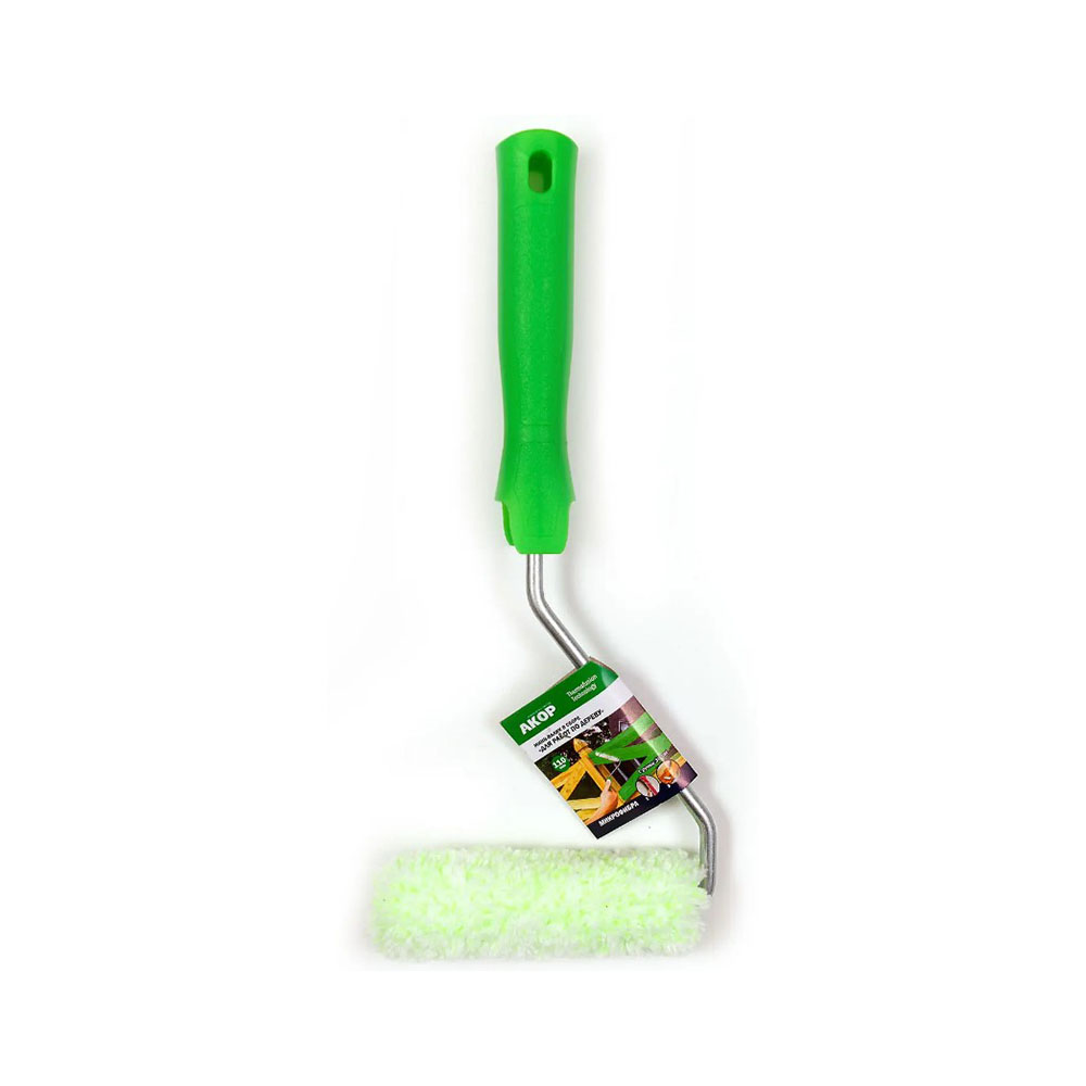 Мини-валик микрофибра для дерева 110 мм ворс 12 мм с бюгелем АКОР - способен удерживать лкм на любых, даже сильно загрязненных и шероховатых поверхностях.отлично удерживает и распределяет в тч жидкие лкм и составы.для работ по дереву,возможно использование с водными лкм,лаками,эмалями.