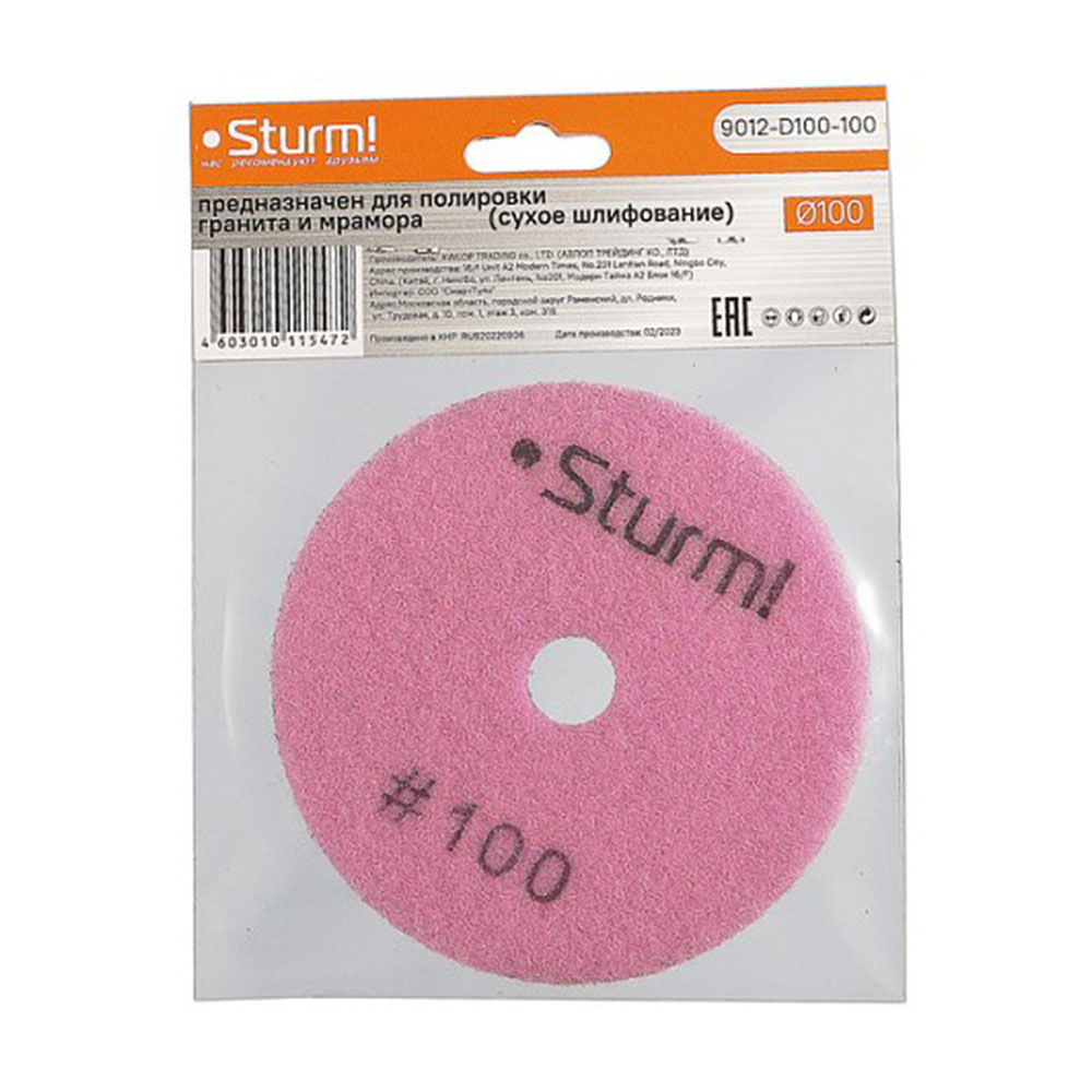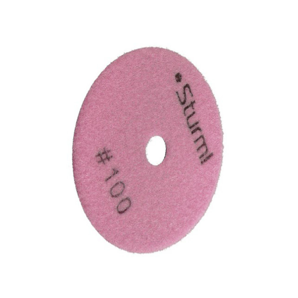 Алмазный шлифовальный круг 100 мм Зернистость 100 Sturm - предназначен для полировальных и шлифовальных машин. Применяется для сухой полировки гранита, мрамора, керамогранита. Высокое качество связки и синтетического алмазного порошка гарантирует длительное использование, а также постепенное равномерное снятие слоя шлифуемого материала, а на выходе ровную поверхность без царапин.