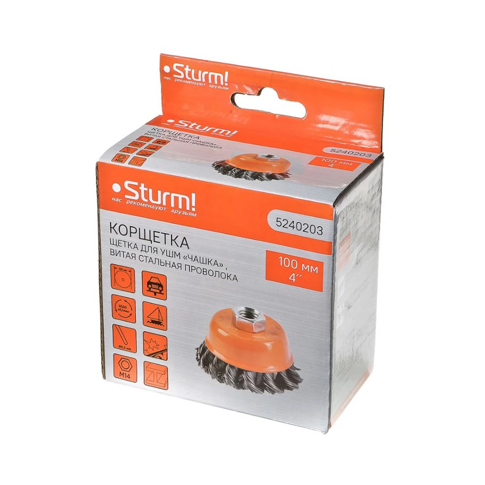 Щетка чашка для УШМ 100 мм Витая Sturm - является сменным элементом для угловых шлифовальных машин. Применяется для шлифовки, полирования, зачистки от лака, краски и коррозии различных поверхностей и изделий. Рабочая часть состоит из скрученной в пучки стальной проволоки.