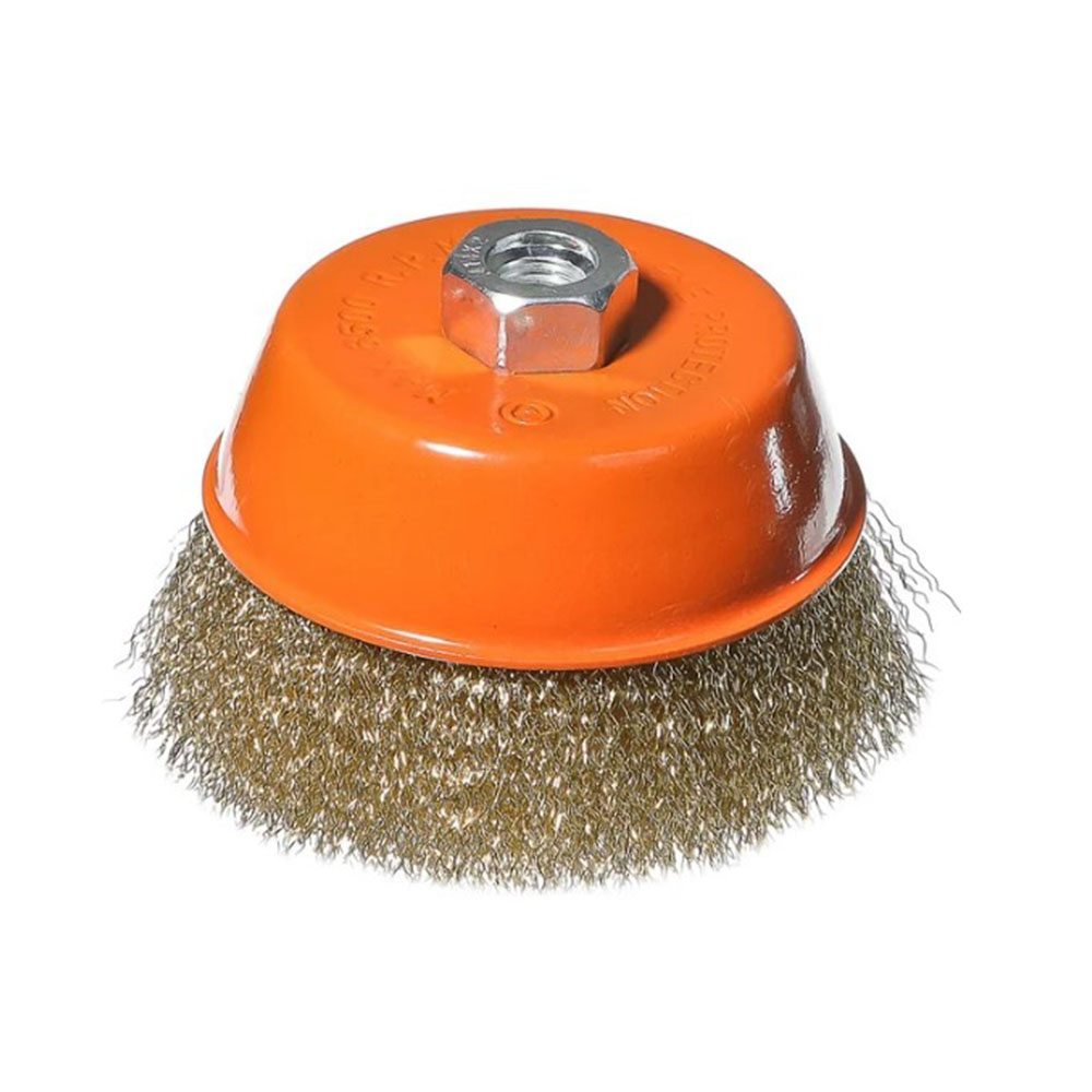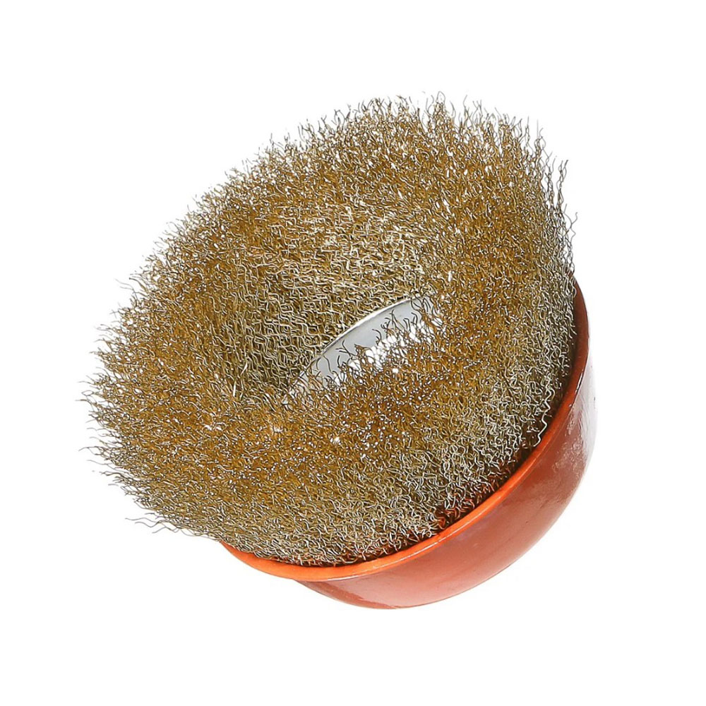 Щетка чашка для УШМ 125 мм Желтая Sturm - является сменным элементом для угловых шлифовальных машин. Применяется для шлифовки, полирования, зачистки от лака, краски и коррозии различных поверхностей и изделий. Рабочая часть состоит из волнистой стальной проволоки с латунным покрытием.