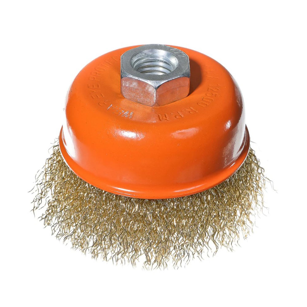 Щетка чашка для УШМ 75 мм Желтая Sturm - является сменным элементом для угловых шлифовальных машин. Применяется для шлифовки, полирования, зачистки от лака, краски и коррозии различных поверхностей и изделий. Рабочая часть состоит из волнистой стальной проволоки с латунным покрытием.