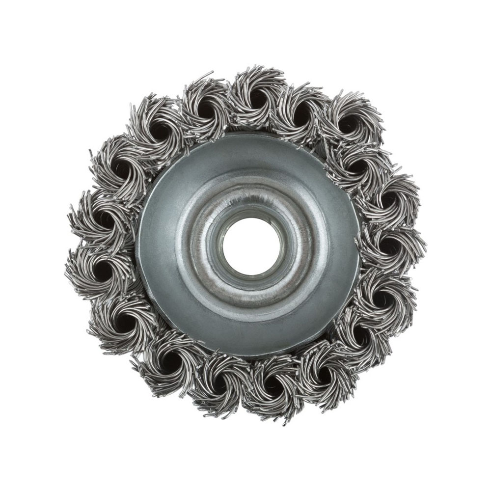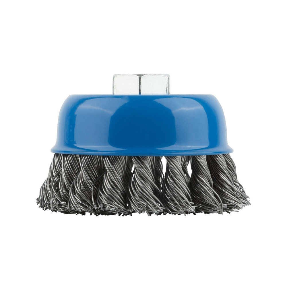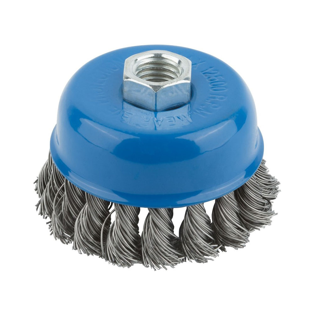 Щетка чашка для УШМ М14х75 мм витая Росомаха - это профессиональный инструмент, разработанный для эффективной очистки и обработки металлических поверхностей с помощью угловой шлифовальной машины (УШМ) с резьбой М14. Диаметр щетки составляет 75 мм, что обеспечивает оптимальное сочетание производительности и маневренности при работе в труднодоступных местах. Витая конструкция рабочей части гарантирует высокую износостойкость и агрессивность воздействия, позволяя быстро удалять ржавчину, окалину, старую краску и другие загрязнения.