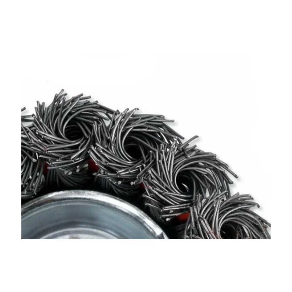 Щетка чашка для УШМ Витая 0,5х65 мм М14 Hardcore - такая конструкция обеспечивает агрессивное, но контролируемое воздействие на обрабатываемую поверхность, позволяя быстро и качественно удалять нежелательные слои, не повреждая при этом основной материал. Диаметр щетки в 65 мм оптимален для работы в труднодоступных местах и обработки небольших площадей, где требуется высокая точность. Резьба М14 делает эту щетку совместимой с большинством угловых шлифовальных машин, представленных на рынке. Простота установки и надежная фиксация гарантируют безопасность и удобство работы. Эргономичная форма щетки позволяет оператору комфортно контролировать процесс шлифовки, минимизируя усталость и повышая точность выполняемых задач.