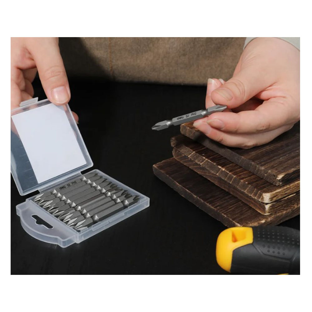 Бита РН2х65 мм DELI - предназначена для использования с шуруповертами или аккумуляторными отвертками. Эти биты имеют особый дизайн, который обеспечивает дополнительную прочность и устойчивость к воздействию нагрузок при высоком крутящем моменте. Каждая бита имеет двухсторонний дизайн, что означает, что обе стороны головки могут быть использованы для закручивания или откручивания винтов. Биты изготовлены из высококачественной стали марки S2 и обладают твердостью 58-60HRC, благодаря чему прослужат долго. Биты поставляются в прочном пластиковом кейсе для удобства хранения и переноски.