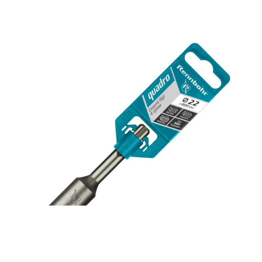 Бур 22х800 мм SDS-plus 4 грани RENNBOHR Quadro - предназначен для сверления отверстий в бетоне (в т.ч. армированном), кирпиче, граните, клинкере, а также искусственном и натуральном камне. Буры RENNBOHR QUADRO изготовлены из высококачественной инструментальной стали 40Cr, оснащены твердосплавной пластиной с центрирующим острием и четырьмя режущими кромками, что обеспечивает максимальную производительность и износостойкость.