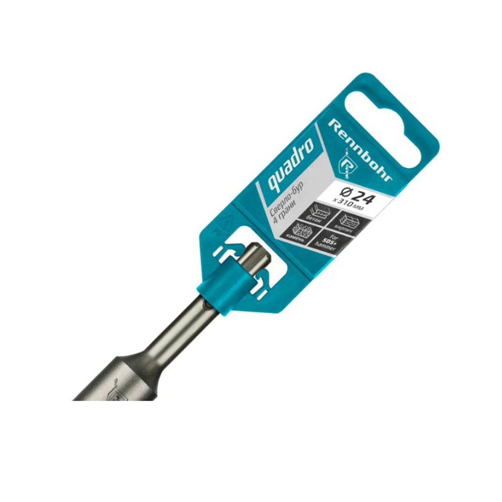 Бур 24х310 мм SDS-plus 4 грани RENNBOHR Quadro - предназначен для сверления отверстий в бетоне (в т.ч. армированном), кирпиче, граните, клинкере, а также искусственном и натуральном камне. Буры RENNBOHR QUADRO изготовлены из высококачественной инструментальной стали 40Cr, оснащены твердосплавной пластиной с центрирующим острием и четырьмя режущими кромками, что обеспечивает максимальную производительность и износостойкость.