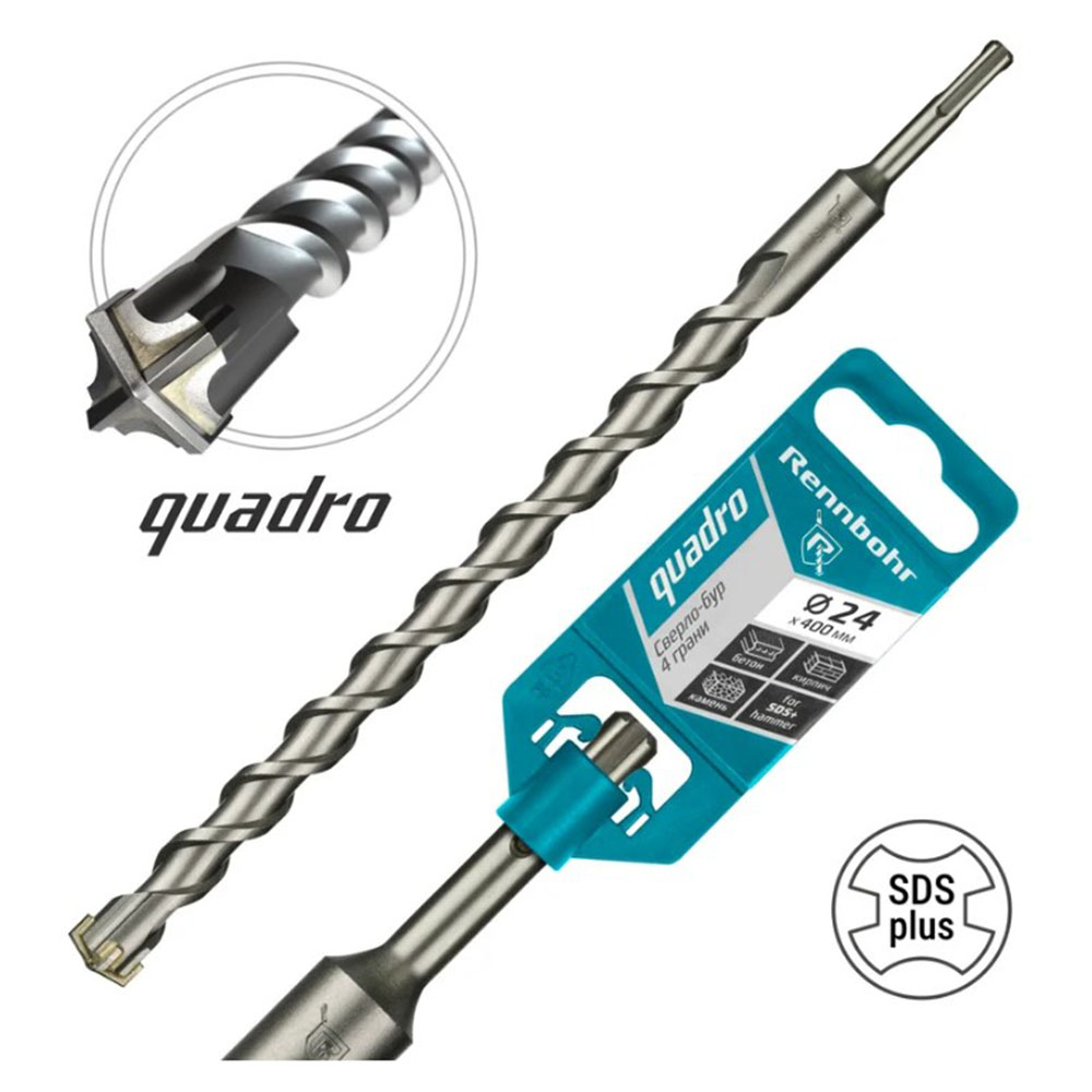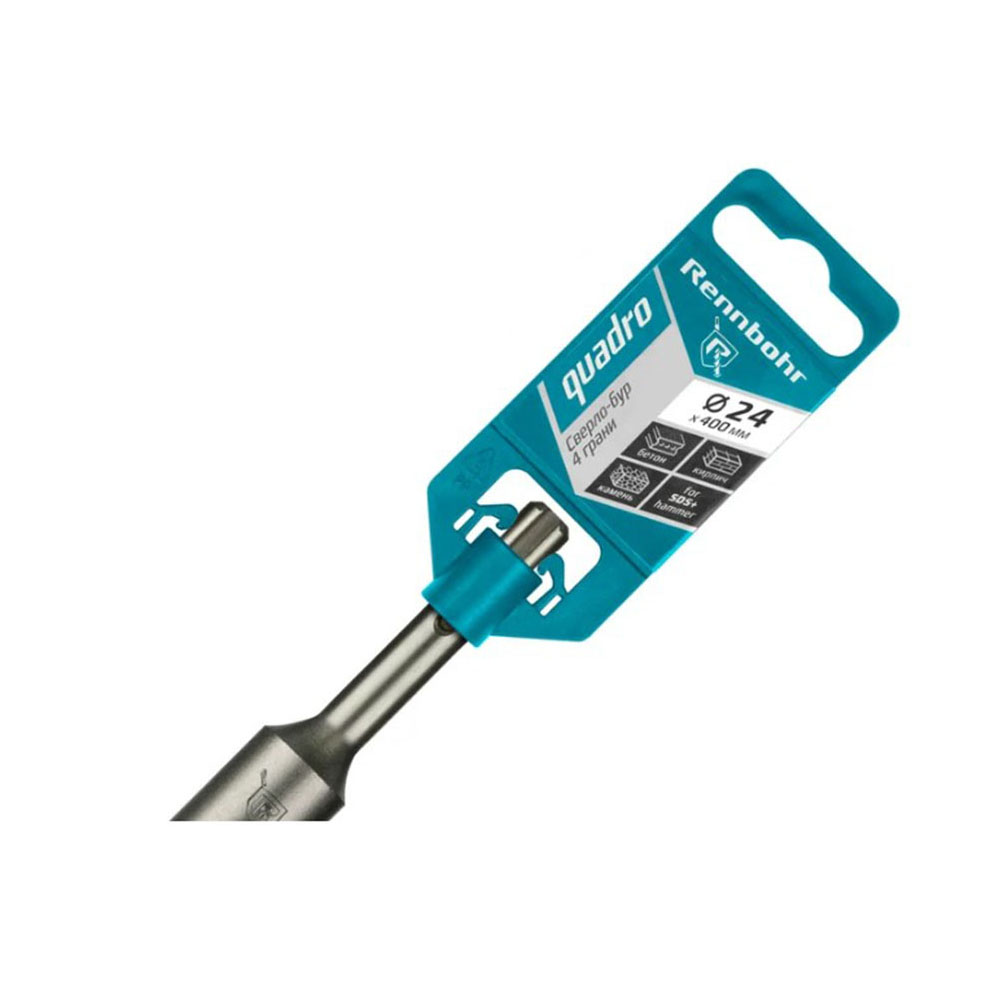 Бур 24х400 мм SDS-plus 4 грани RENNBOHR Quadro - предназначен для сверления отверстий в бетоне (в т.ч. армированном), кирпиче, граните, клинкере, а также искусственном и натуральном камне. Буры RENNBOHR QUADRO изготовлены из высококачественной инструментальной стали 40Cr, оснащены твердосплавной пластиной с центрирующим острием и четырьмя режущими кромками, что обеспечивает максимальную производительность и износостойкость.