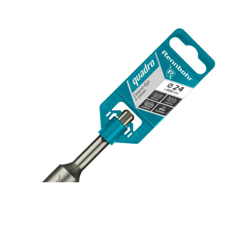 Бур 24х800 мм SDS-plus 4 грани RENNBOHR Quadro - предназначен для сверления отверстий в бетоне (в т.ч. армированном), кирпиче, граните, клинкере, а также искусственном и натуральном камне. Буры RENNBOHR QUADRO изготовлены из высококачественной инструментальной стали 40Cr, оснащены твердосплавной пластиной с центрирующим острием и четырьмя режущими кромками, что обеспечивает максимальную производительность и износостойкость.
