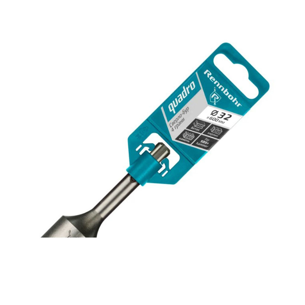 Бур 32х600 мм SDS-plus 4 грани RENNBOHR Quadro - предназначен для сверления отверстий в бетоне (в т.ч. армированном), кирпиче, граните, клинкере, а также искусственном и натуральном камне. Буры RENNBOHR QUADRO изготовлены из высококачественной инструментальной стали 40Cr, оснащены твердосплавной пластиной с центрирующим острием и четырьмя режущими кромками, что обеспечивает максимальную производительность и износостойкость.