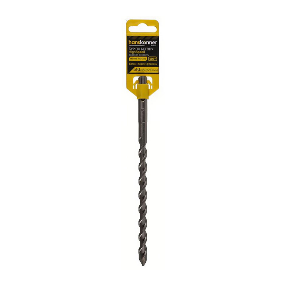 Бур по бетону SDS-plus 10х210 мм 2 грани Hanskonner - ресурс выше в 2 раза благодаря твердости режущей пластины 89.5-90.5 HRA. Скорость работ увеличена на 20%. Легкий старт бурения обеспечивает центрирующий резец. Тело бура из высококачественной стали обладает большей жесткостью и увеличивает точность отверстий.