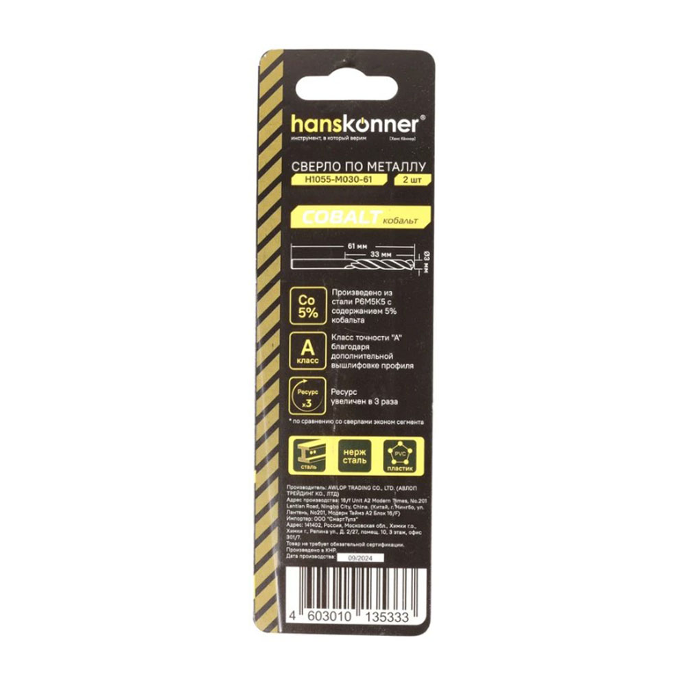 Сверло по металлу кобальт 3,0 мм Hanskonner - представляет собой надежный инструмент для работы с металлическими материалами. Изготовленное из высококачественной стали, оно обеспечивает долговечность и устойчивость к износу. Спиральная форма стружкоотвода способствует эффективному удалению стружки, что улучшает производительность и точность сверления. Цилиндрический хвостовик обеспечивает надежную фиксацию в патроне, а угол заточки 135 градусов способствует легкому началу сверления и снижает риск смещения. Это сверло идеально подходит для профессионального использования, обеспечивая высокую точность и качество обработки.