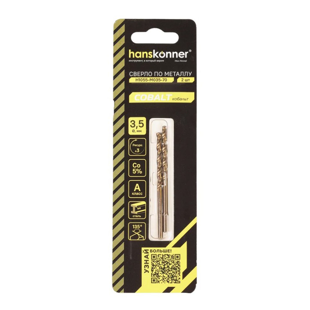 Сверло по металлу кобальт 3,5 мм Hanskonner - представляет собой надежный инструмент для работы с металлическими материалами. Изготовленное из высококачественной стали, оно обеспечивает долговечность и устойчивость к износу. Спиральная форма стружкоотвода способствует эффективному удалению стружки, что улучшает производительность и точность сверления. Цилиндрический хвостовик обеспечивает надежную фиксацию в патроне, а угол заточки 135 градусов способствует легкому началу сверления и снижает риск смещения. Это сверло идеально подходит для профессионального использования, обеспечивая высокую точность и качество обработки.