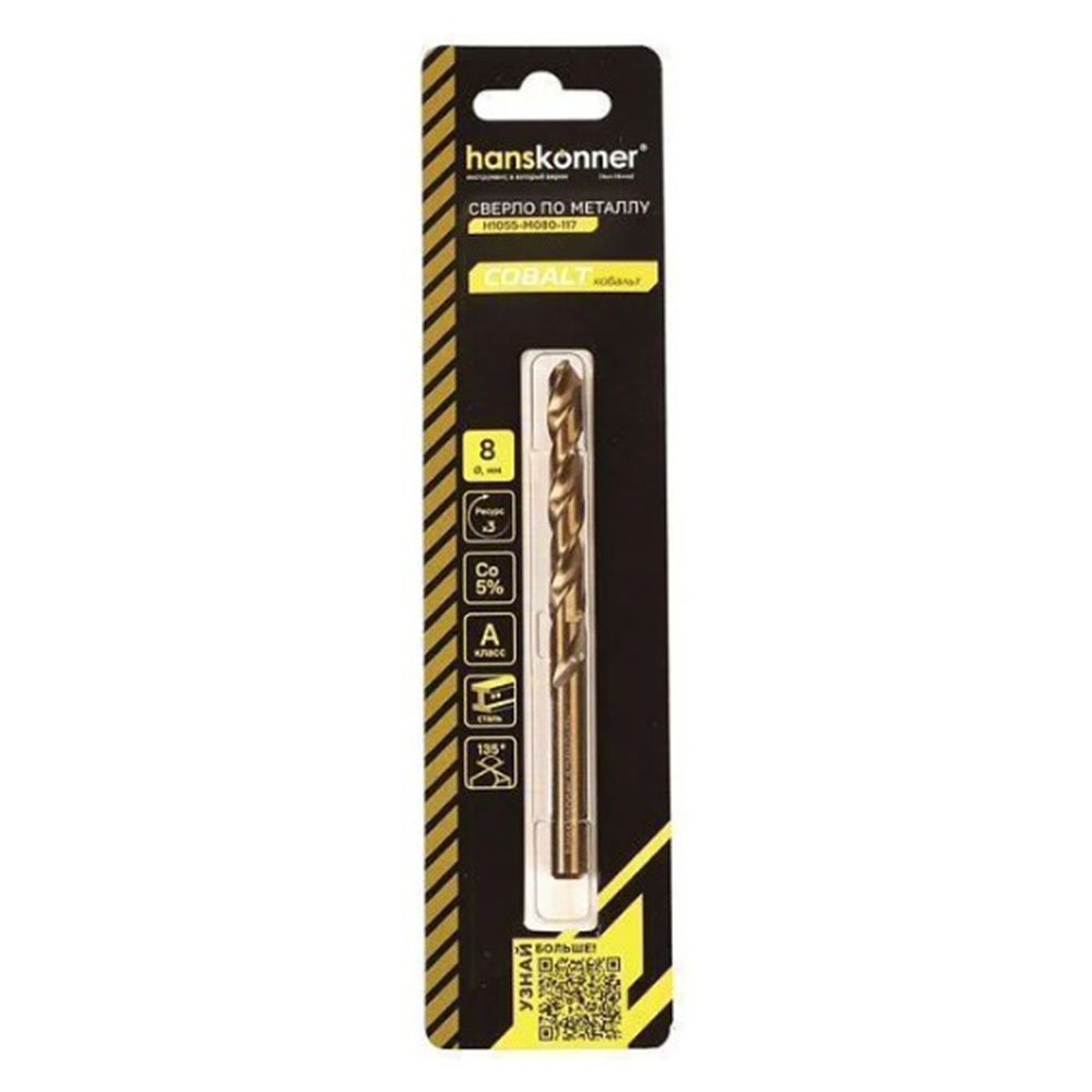 Сверло по металлу кобальт 8,0 мм Hanskonner - представляет собой надежный инструмент для работы с металлическими материалами. Изготовленное из высококачественной стали, оно обеспечивает долговечность и устойчивость к износу. Спиральная форма стружкоотвода способствует эффективному удалению стружки, что улучшает производительность и точность сверления. Цилиндрический хвостовик обеспечивает надежную фиксацию в патроне, а угол заточки 135 градусов способствует легкому началу сверления и снижает риск смещения.Это сверло идеально подходит для профессионального использования, обеспечивая высокую точность и качество обработки.