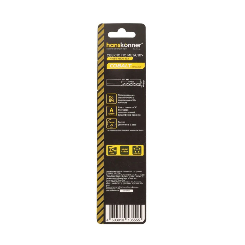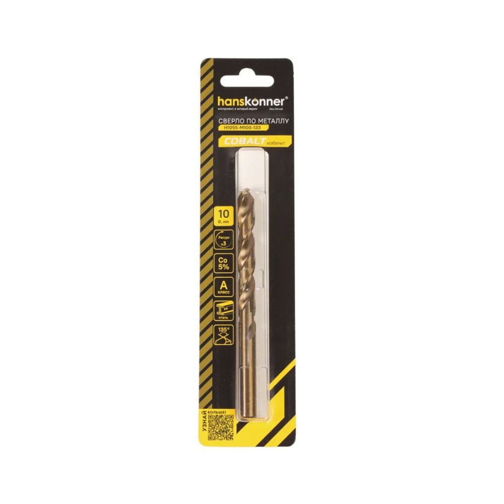 Сверло по металлу кобальтовое 10,0 мм Hanskonner - представляет собой надежный инструмент для работы с металлическими материалами. Изготовленное из высококачественной стали, оно обеспечивает долговечность и устойчивость к износу. Спиральная форма стружкоотвода способствует эффективному удалению стружки, что улучшает производительность и точность сверления. Цилиндрический хвостовик обеспечивает надежную фиксацию в патроне, а угол заточки 135 градусов способствует легкому началу сверления и снижает риск смещения. Это сверло идеально подходит для профессионального использования, обеспечивая высокую точность и качество обработки.
