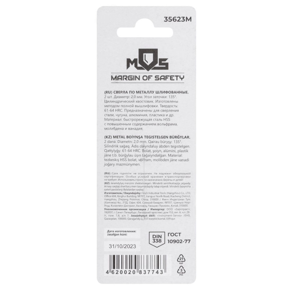 Сверло по металлу 2,0 мм 2 шт MOS - предназначены для сверления стали, чугуна, тонкого алюминия, пластика и др. Подходят как профессионалам, так и домашним мастера! Сверла изготовлены качественным методом производства — полная вышлифовка (Fully Ground), что позволило повысить точность сверления и добиться максимально эффективного отвода стружки. При производстве используется высококачественная быстрорежущая сталь с повышенным содержанием вольфрама, молибдена и ванадия, что значительно увеличивает ресурс и прочность сверл. Благодаря профессиональному углу заточки 135 градусов можно сверлить различные материалы без предварительного кернения.