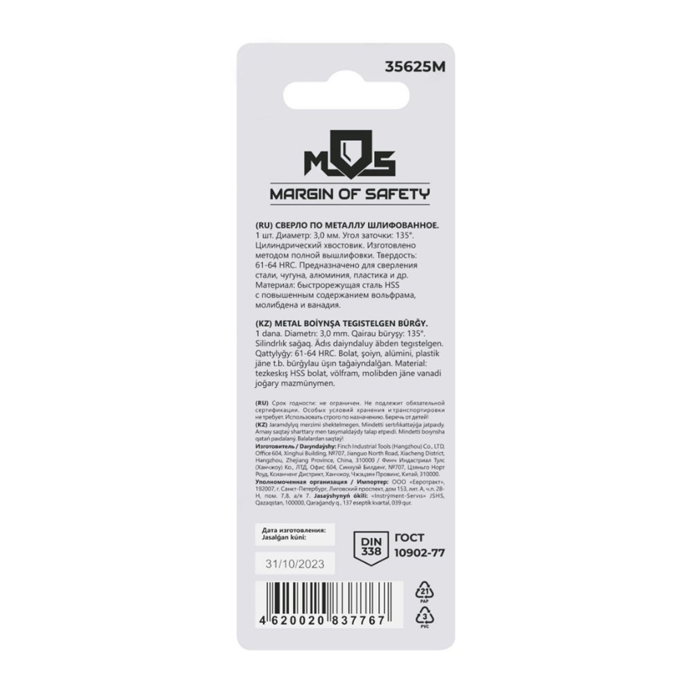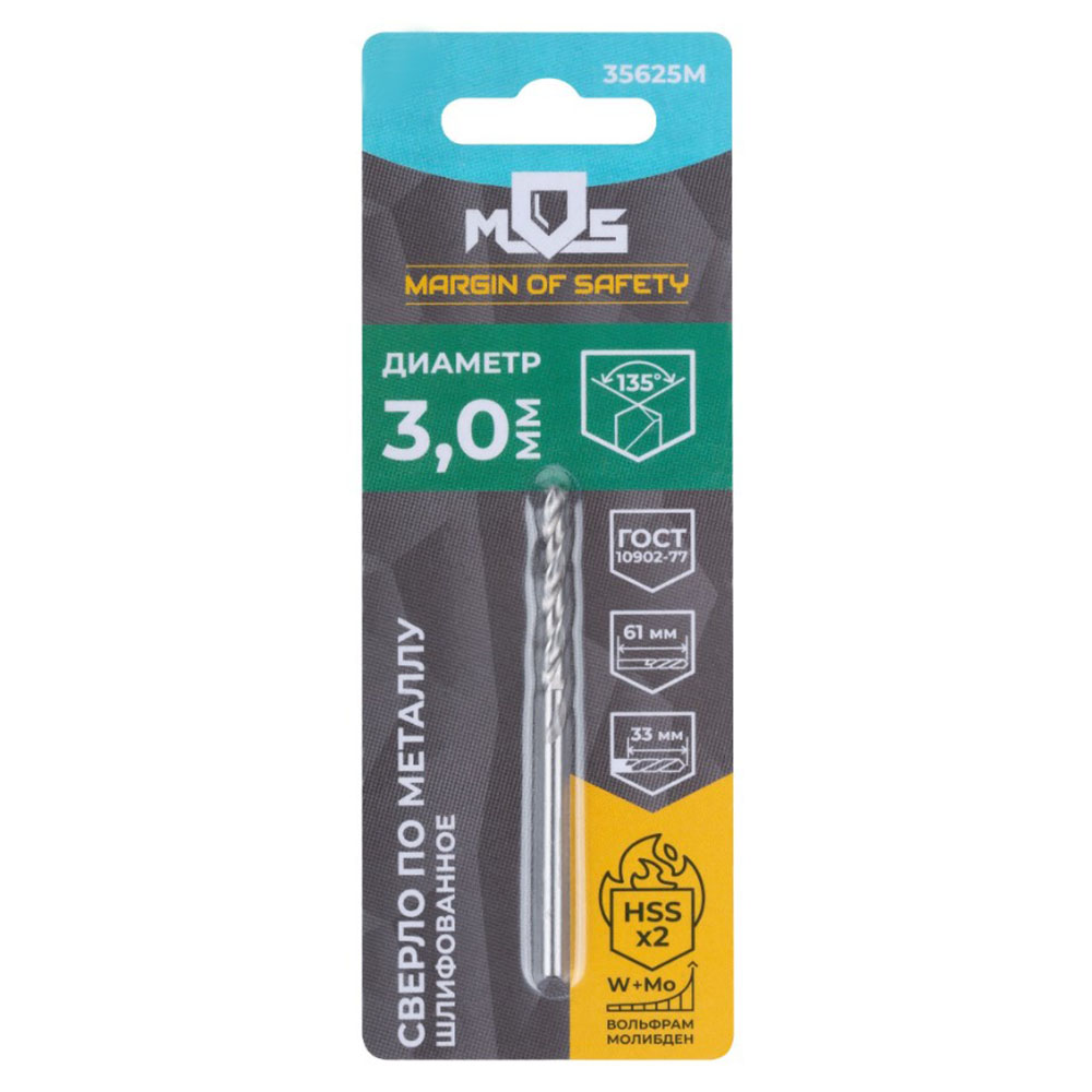 Сверло по металлу 3,0 мм 1 шт MOS - предназначено для сверления стали, чугуна, тонкого алюминия, пластика и др. Подходит как профессионалам, так и домашним мастерам! Сверла изготовлены качественным методом производства — полная вышлифовка (Fully Ground), что позволило повысить точность сверления и добиться максимально эффективного отвода стружки. При производстве используется высококачественная быстрорежущая сталь с повышенным содержанием вольфрама, молибдена и ванадия, что значительно увеличивает ресурс и прочность сверл. Благодаря профессиональному углу заточки 135 градусов можно сверлить различные материалы без предварительного кернения.