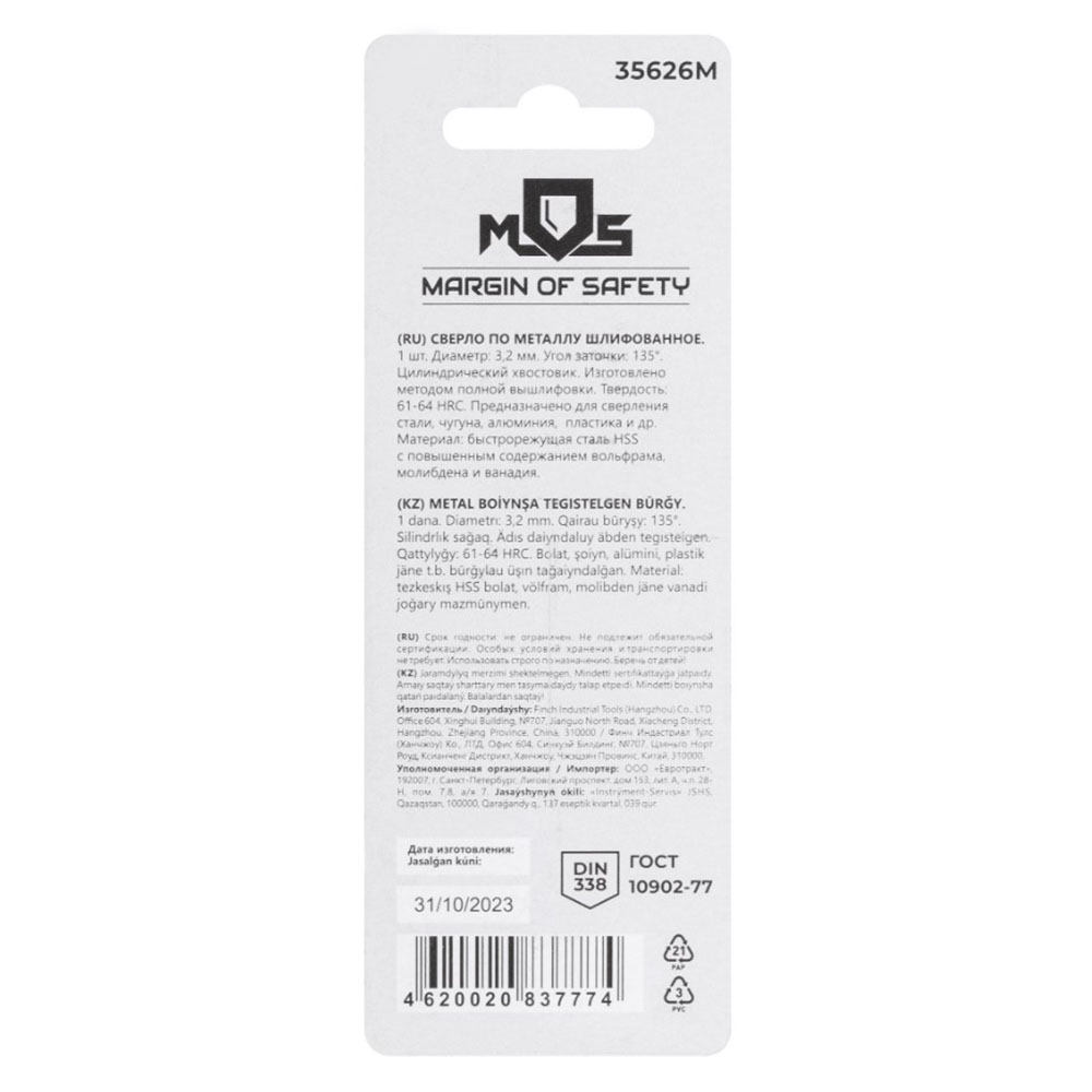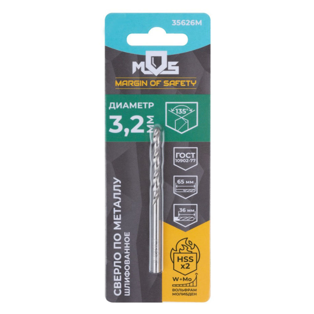 Сверло по металлу 3,2 мм 1 шт MOS - предназначено для сверления стали, чугуна, тонкого алюминия, пластика и др. Подходит как профессионалам, так и домашним мастерам! Сверла изготовлены качественным методом производства — полная вышлифовка (Fully Ground), что позволило повысить точность сверления и добиться максимально эффективного отвода стружки. При производстве используется высококачественная быстрорежущая сталь с повышенным содержанием вольфрама, молибдена и ванадия, что значительно увеличивает ресурс и прочность сверл. Благодаря профессиональному углу заточки 135 градусов можно сверлить различные материалы без предварительного кернения.