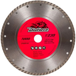 Круг алмазный 230х22,23х8х2,7 мм Diaforce турбо, применяется для обработки бетона, асфальта, гранита, камня, кирпича, блоков, плитки и вообще почти всех твердых или абразивных строительных материалов.