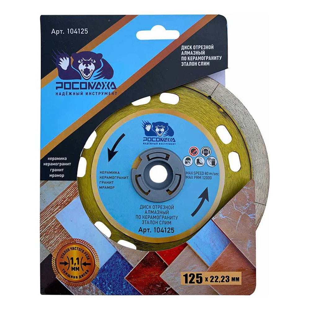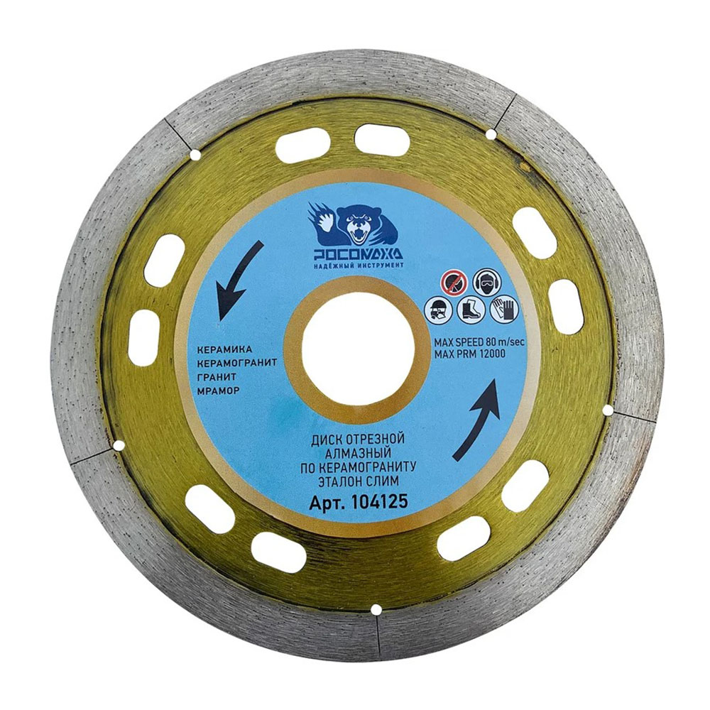 Диск алмазный сплошной по керамике 125х1,1 мм РОСОМАХА -этот инструмент станет незаменимым помощником для тех, кто ценит качество и точность в каждом разрезе. Диск диаметром 125 мм и толщиной всего 1.1 мм идеально подходит для тонкой и аккуратной работы с керамогранитом, обеспечивая чистый и ровный срез без сколов и трещин.