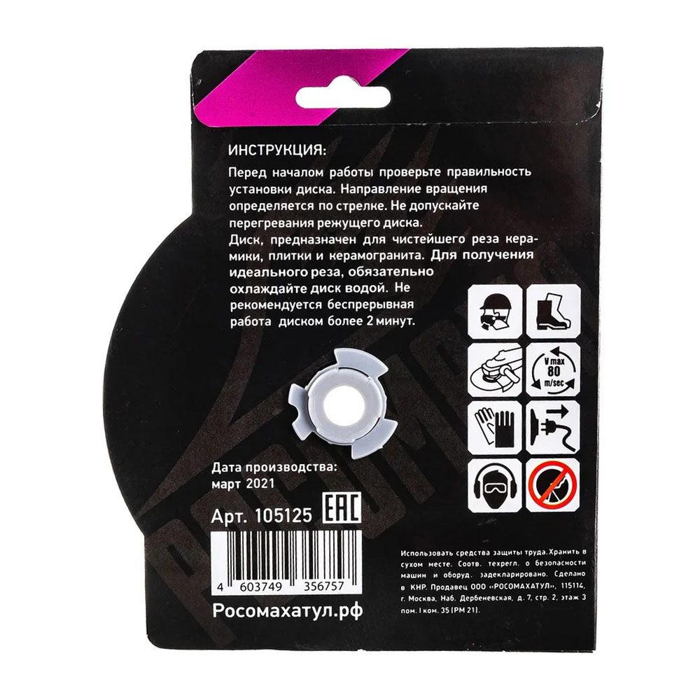 Круг алмазный Росомаха 125х22х1.1 мм супер тонкий сплошной, предназначен для чистейшего реза в различных материалах. Благодаря минимальной толщине и специальному строению режущей части диска достигается минимальное трение в разрезаемом материале и минимизируется вероятность появления сколов, что очень важно при работе с керамическими материалами. Используется при работе по керамике, керамограниту, кирпичу, граниту, мрамору.