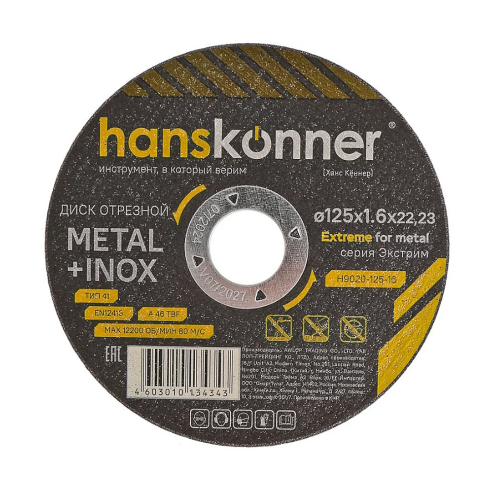Диск по металлу 125х1.6х22.23 Hanskonner - применяется для резки металла с помощью угловых шлифовальных машин. MonoCorundum - абразив на основе монокристаллического корунда обеспечивает стабильность реза благодаря высокой твердости и прочности. HardBond - высокотехнологичная связка гарантирует эффективную работу даже в условиях перегрева. ReinforcedMesh - усиленная армированная сетка из стекловолокна.