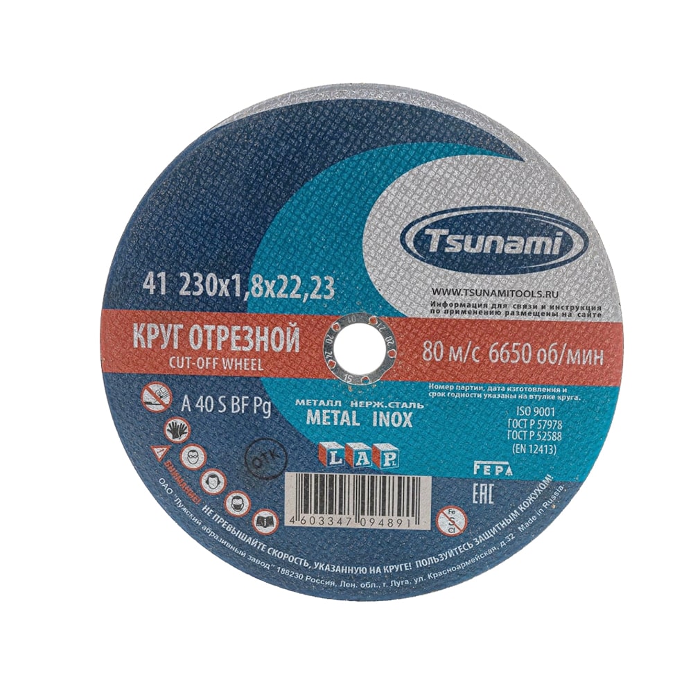Круг отрезной по металлу Tsunami применяется для реза металла и заготовок из нержавеющей стали. Диск отличается высокой производительностью, большой скоростью реза и долгим сроком службы.