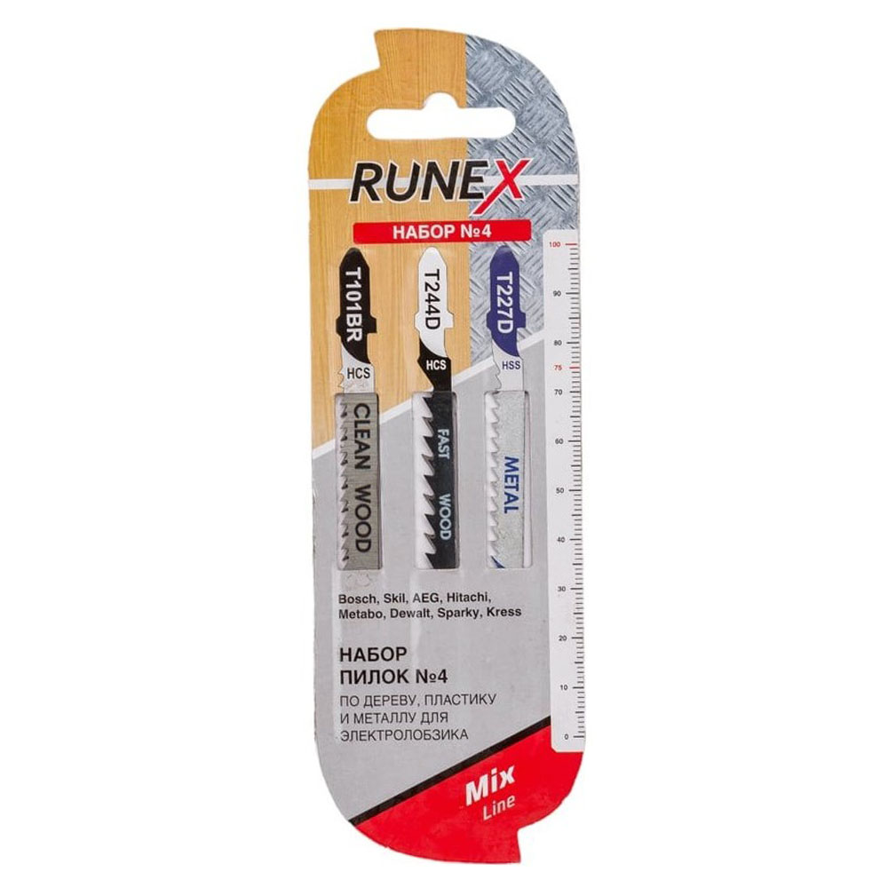 Пилки для электролобзика №4 Т227D/Т101BR/Т244D RUNЕХ - представляет собой универсальное решение для широкого спектра задач по распиловке древесины, пластика и других материалов. Каждая пилка в этом комплекте обладает уникальными характеристиками, разработанными для обеспечения максимальной эффективности и точности при выполнении различных типов работ.