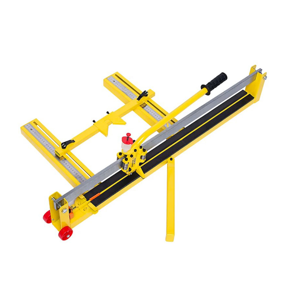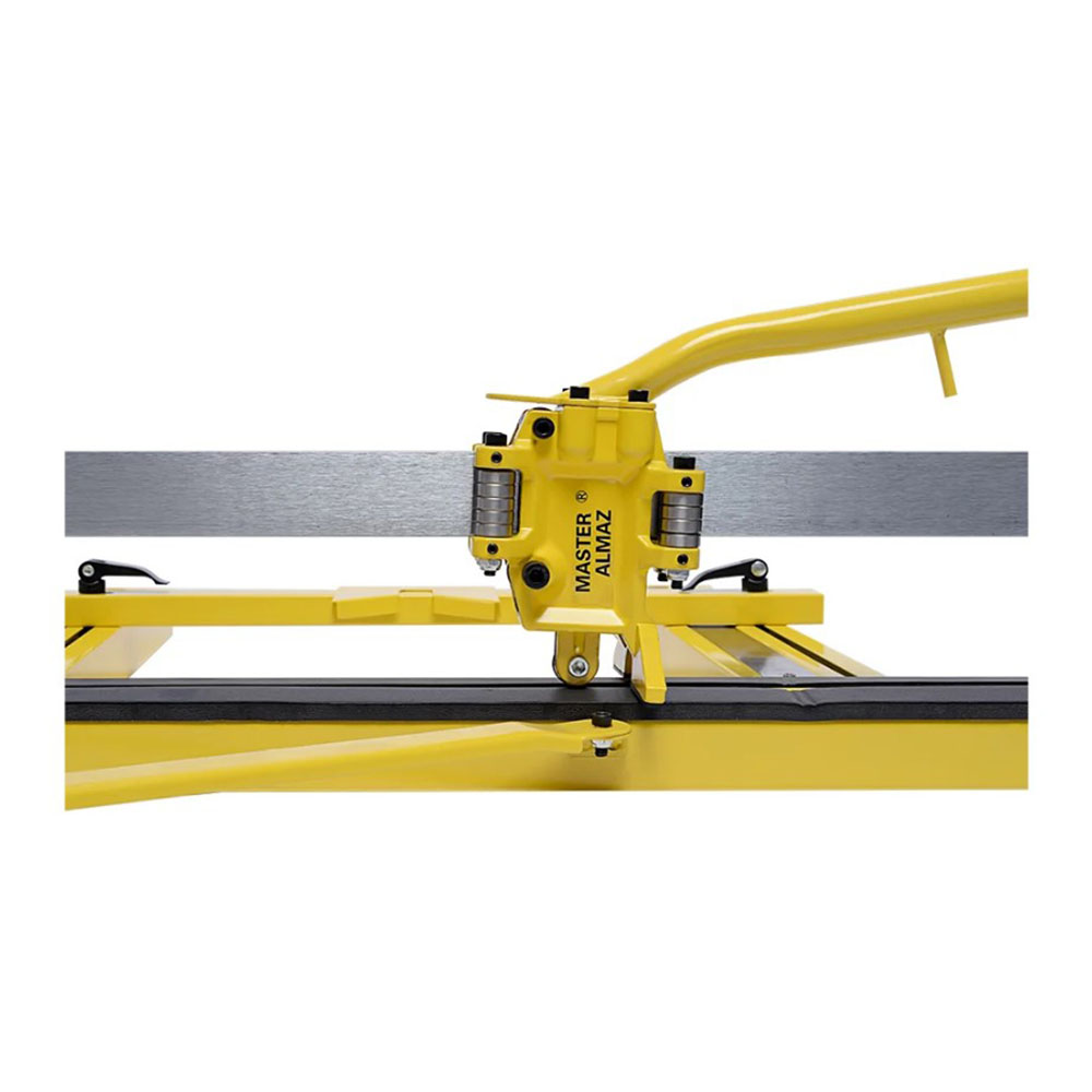 Плиткорез профессиональный усиленный 1200 мм МастерАлмаз - Профессиональный усиленный плиткорез подходит для резки всех типов плитки толщиной от 3 до 15 мм, гарантией этому является прочная алюминиевая направляющая. Рукоятка оснащена двумя сверхпрочными лапками для деликатного разлома на разной ширине плитки. Благодаря механизму каретки, оснащенной подшипниками, плиткорез имеет плавный ход, что позволяет выполнять более точную безошибочную резку. С помощью дополнительной опорной ножки, удобно работать с плиткой большого формата. Откидной боковой упор-линейка позволяет позиционировать плитку под разным углом для удобства диагональных резов. Плиткорез оснащен режущим роликом на подшипнике. Для предотвращения скольжения плитки и комфортного разлома, на рабочей поверхности стола полиуретановое покрытие.