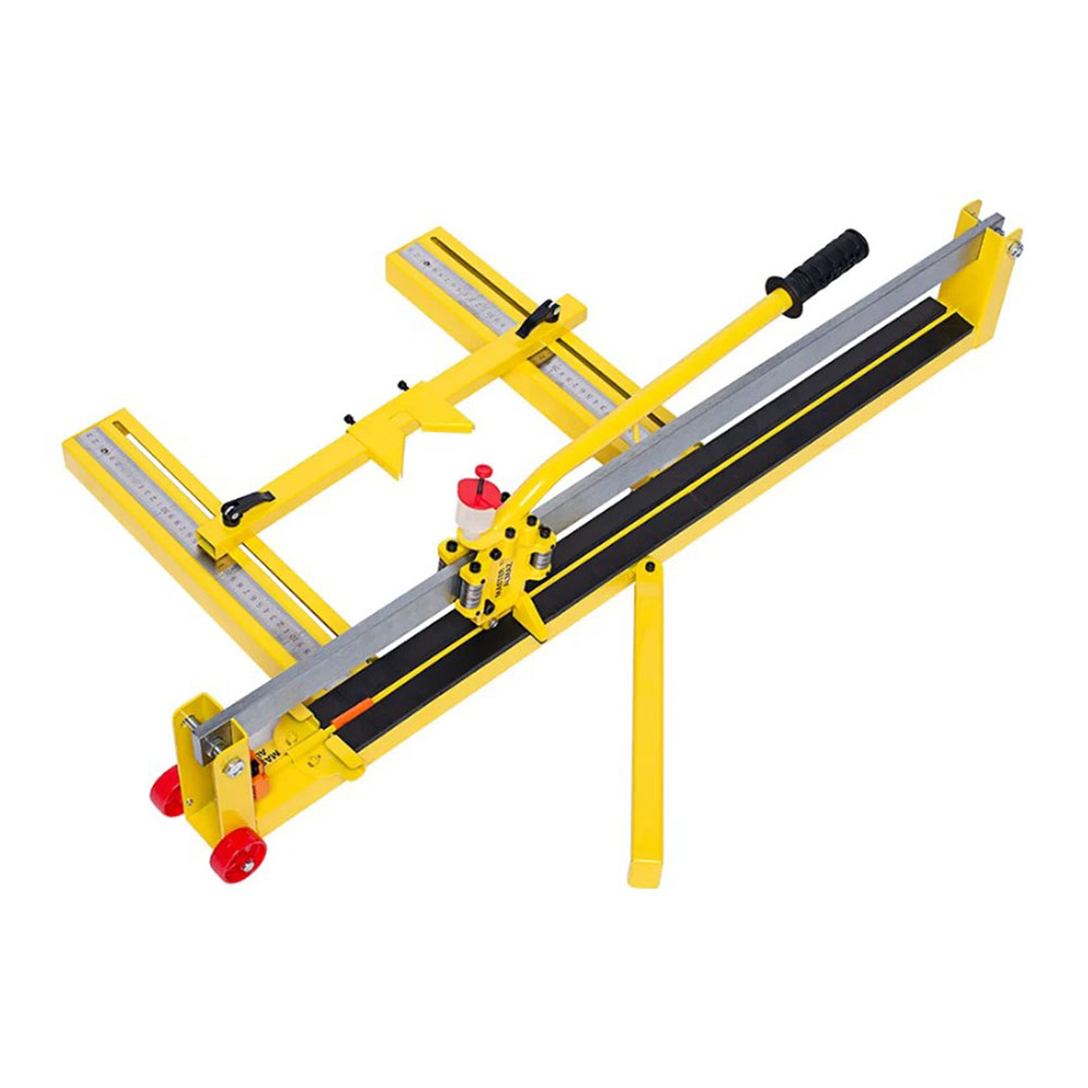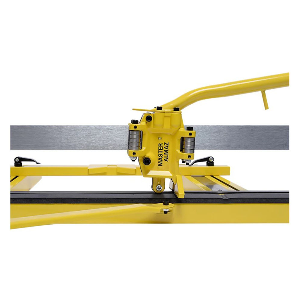 Плиткорез профессиональный усиленный 800 мм МастерАлмаз - подходит для резки всех типов плитки толщиной от 3 до 15 мм, гарантией этому является прочная алюминиевая направляющая. Станина и рукоятка из стали. Рукоятка оснащена двумя сверхпрочными лапками для деликатного разлома на разной ширине плитки. Благодаря механизму каретки, оснащенной подшипниками, плиткорез имеет плавный ход, что позволяет выполнять более точную безошибочную резку. С помощью дополнительной опорной ножки, удобно работать с плиткой большого формата. Откидной боковой упор-линейка позволяет позиционировать плитку под разным углом для удобства диагональных резов. Плиткорез оснащен режущим роликом на подшипнике. Для предотвращения скольжения плитки и комфортного разлома, на рабочей поверхности стола полиуретановое покрытие.