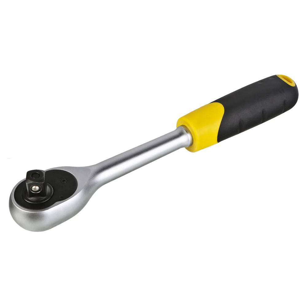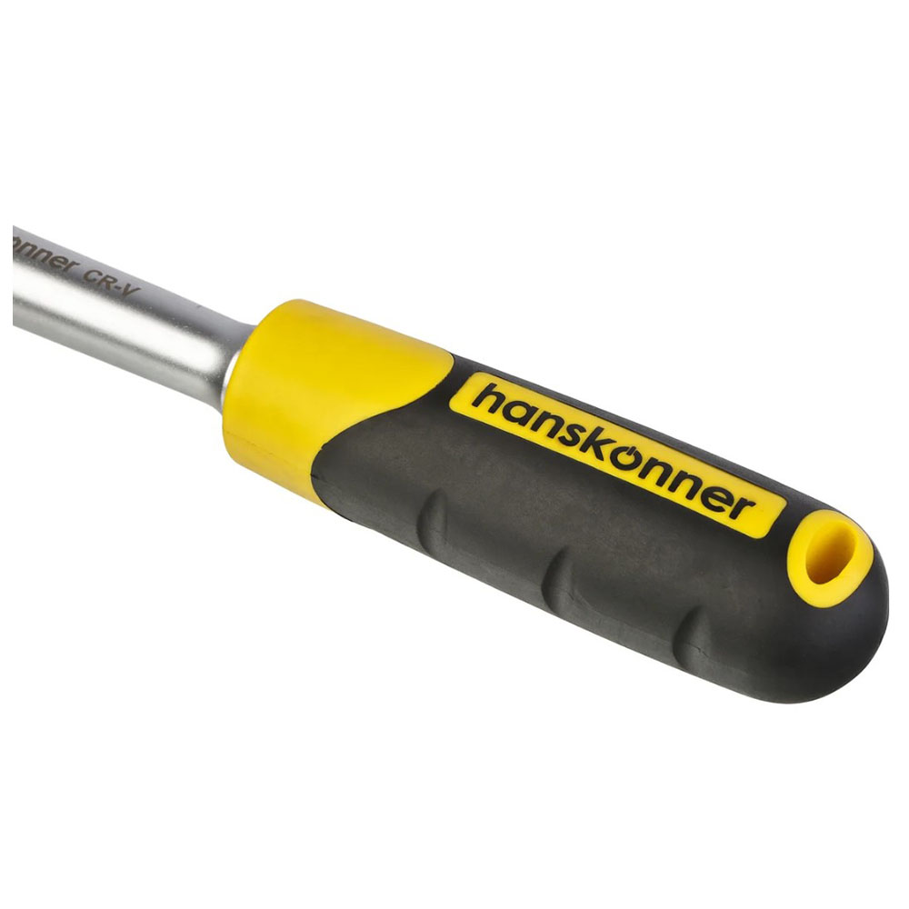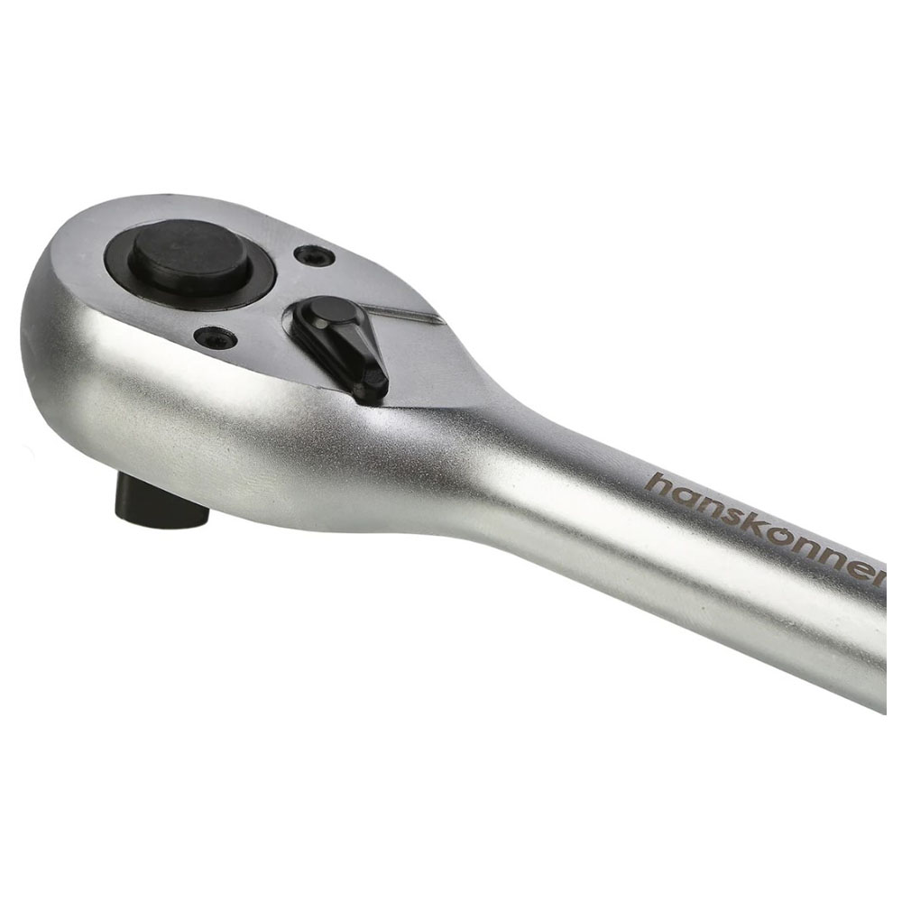 Ключ трещотка 1/2 Hanskonner - высокий показатель количества зубьев обеспечивает малый угол поворота (всего 4°), что позволяет работать в ограниченном пространстве, где требуется минимальный ход рукояти. Маслобензостойкая рукоять — идеальное решение для работы в автомастерских. Она устойчива к воздействию масел, бензина и других технических жидкостей, что обеспечивает долговечность инструмента и комфорт при использовании в условиях повышенной загрязненности. Эргономичная рукоять имеет специальную форму для удобного захвата, что снижает усталость при длительной работе. Позволяет быстро менять направление вращения (по часовой стрелке или против), что упрощает закручивание и откручивание крепежей. Прочная конструкция – инструмент изготовлен из высококачественной хромованадиевой стали, что обеспечивает высокую прочность и износостойкость.
