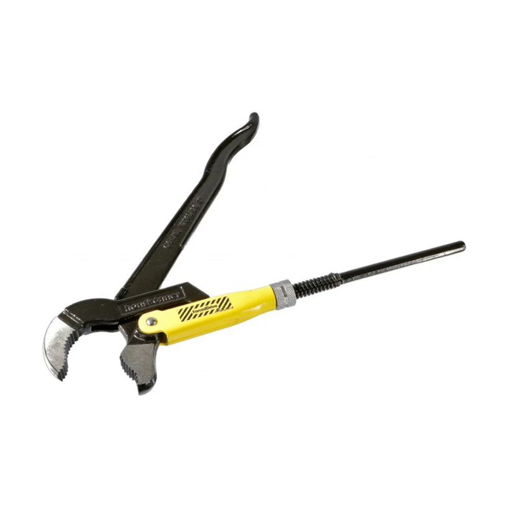 Ключ трубный рычажный № 1 1" литой L 300 мм 45° HANSKONNER - используется для вращения или фиксации труб и других деталей произвольной формы. Корпус изготовлен из высококачественной хромо-ванадиевой стали, что позволяет выдерживать повышенные нагрузки на протяжении длительного времени. Выверенный уровень закалки рабочих кромок до 50-55 HRC позволит надолго сохранить их геометрию. Прогрессивная форма зуба с наклоном против направления вращения обеспечивает самоблокируемый захват деталей. Специальное покрытие ArmouredPaint (бронированная краска) защищает инструмент от коррозии и внешнего воздействия. Регулировочная гайка снабжена стопорным кольцом для исключения её потери.