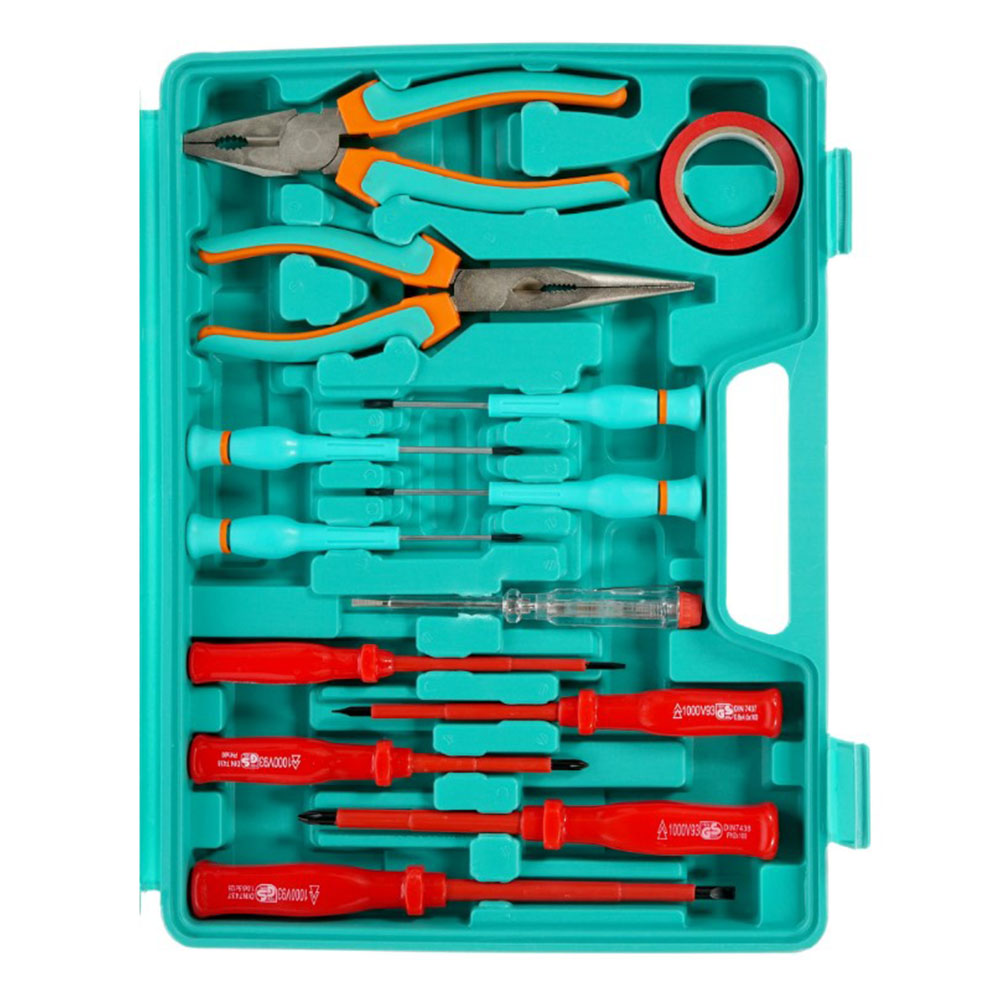 Набор инструментов 72 предмета кейс Sturm - многофункционален. Оснащение, входящее в комплект (всего в наборе 72 предмета) позволяет выполнять почти любые задачи. Отдельное внимание на себя обращает наличие диэлектрических отверток, отверток для точных работ, индикаторной отвертки и рулетки. Набор подходит для работы с крепежными изделиями самых распространенных типов и размеров. Инструменты, входящие в набор Sturm! 1310-01-TS7, отличаются эргономичной формой рукояток. Основной материал изготовления инструментов – высококачественная хромованадиевая сталь. Этот материал обладает высокой стойкостью к нагрузкам ударного и усталостного характера. Набор поставляется в кейсе. Цветовое оформление кейса оригинально: он голубой. Масса набора невелика: величина данного показателя равна 2 кг. Прилагаемая этикетка содержит полную сопутствующую информацию.