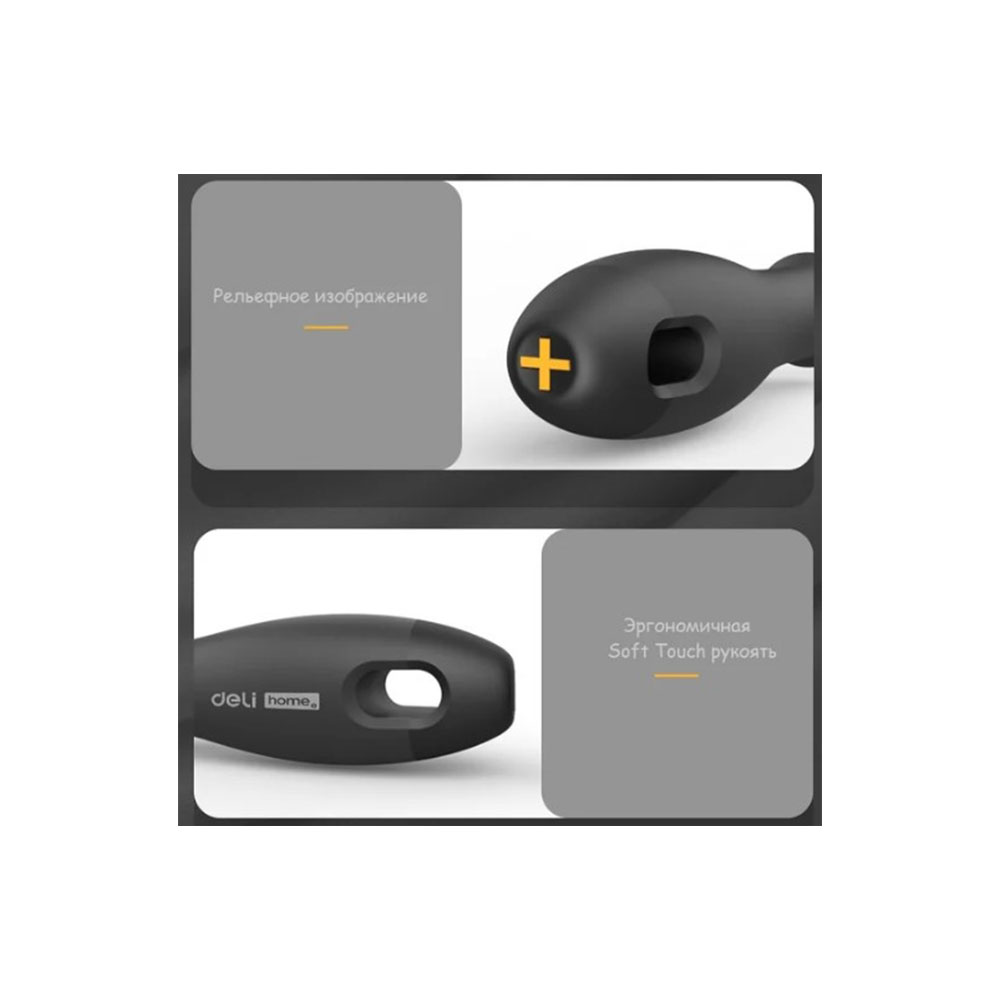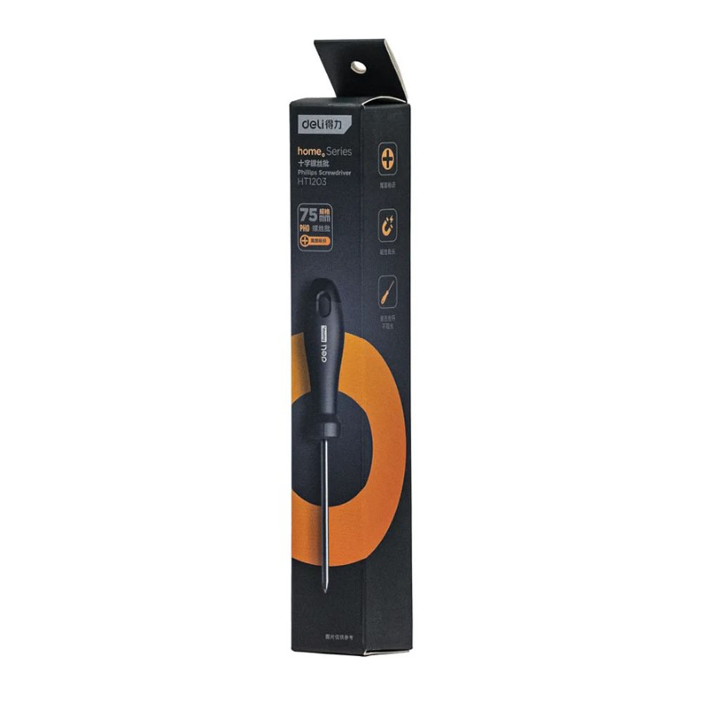 Отвертка крестовая DELI НТ1203 РН0х75 мм - используется для работ с резьбовыми соединениями в процессе ремонта или монтажа. Стержень выполнен из качественной хромованадиевой (Cr-V) стали, что обеспечивает высокую антикоррозийную стойкость и долговечность, а магнитный наконечник способствует снижению вероятности потери крепежа, с которым производится работа. На стержне при помощи лазерной гравировки указан тип и размер отвертки. Эргономичная двухкомпонентная TPR+PP рукоятка с покрытием Soft Touch не скользит в руках, гарантируя продолжительную комфортную работу.