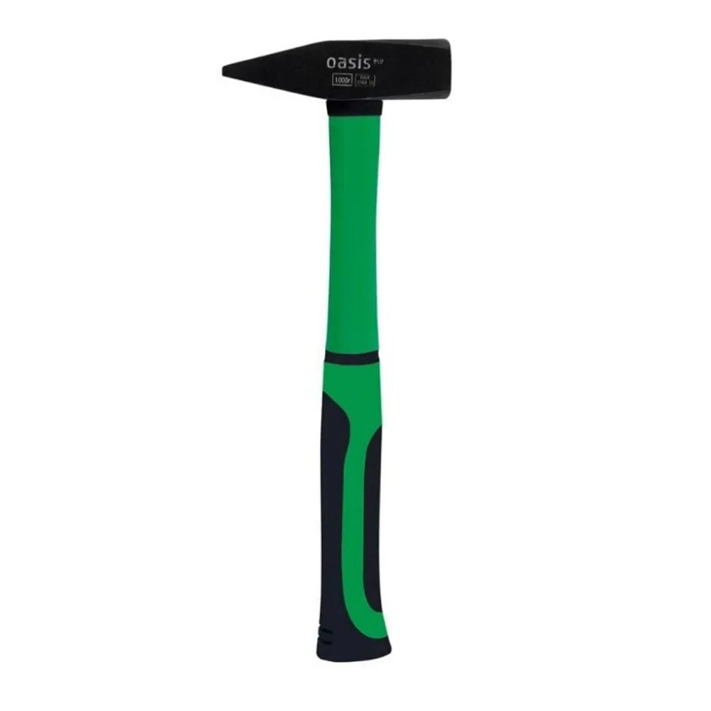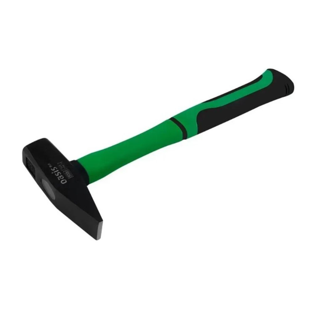 Молоток кованный 1000 гр с фиберглассовой зеленой рукояткой OASIS - это незаменимый инструмент для выполнения различных видов слесарных работ, таких как забивание гвоздей, выравнивание поверхностей, создание углублений и тому подобных. Он состоит из двух элементов: головки молотка и фиберглассовой ручки. Фиберглассовая рукоятка обеспечивает удобный и надёжный хват, а также гасит вибрации, возникающие при ударе. Это позволяет работать дольше без усталости и снижает риск травмы. Головка молотка изготовлена из закалённой высококачественной стали, что обеспечивает высокую прочность и долговечность инструмента.