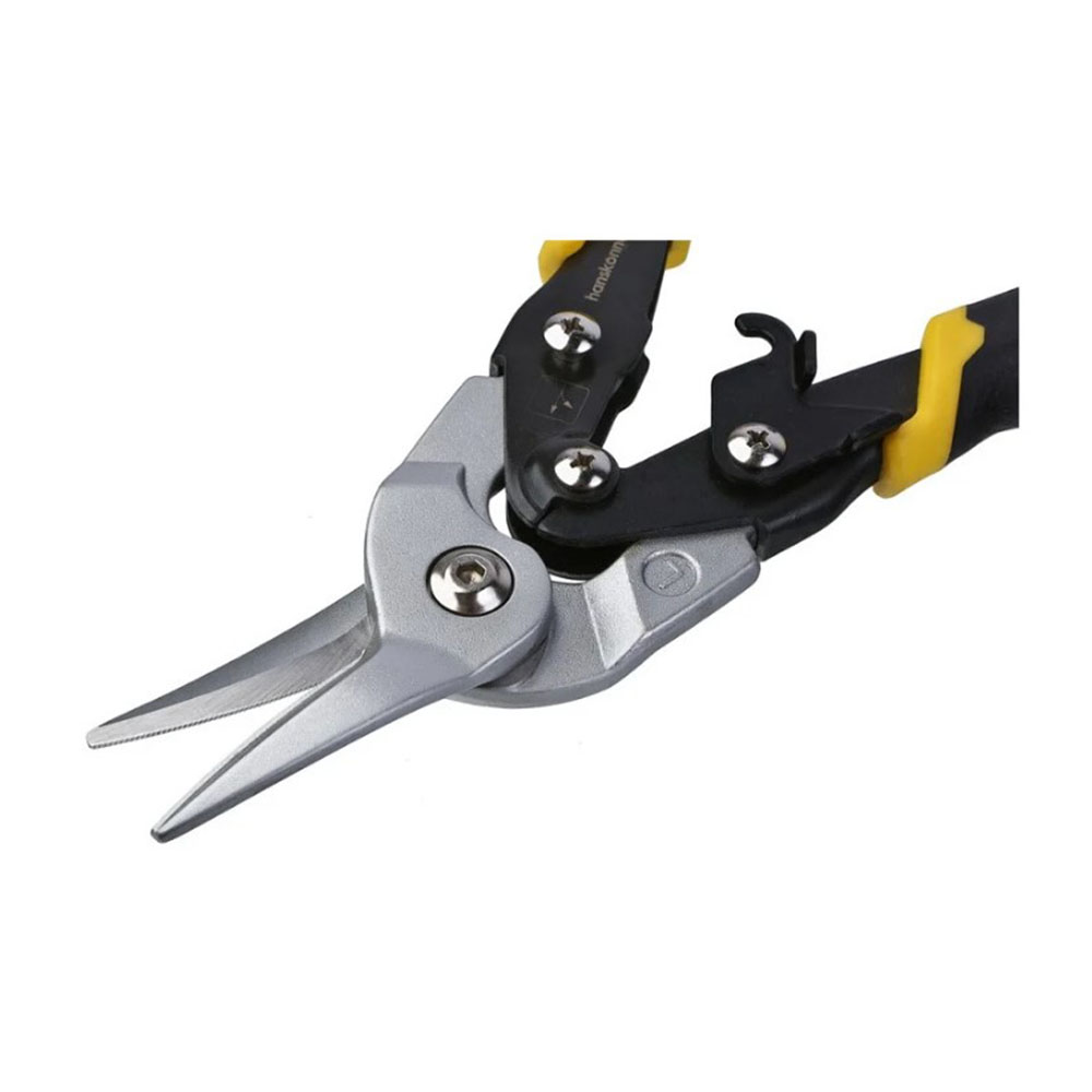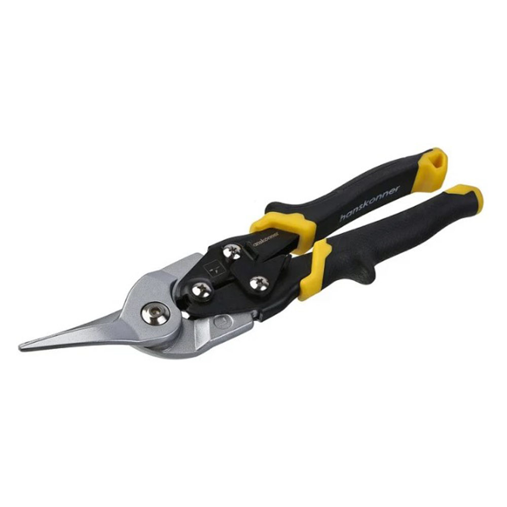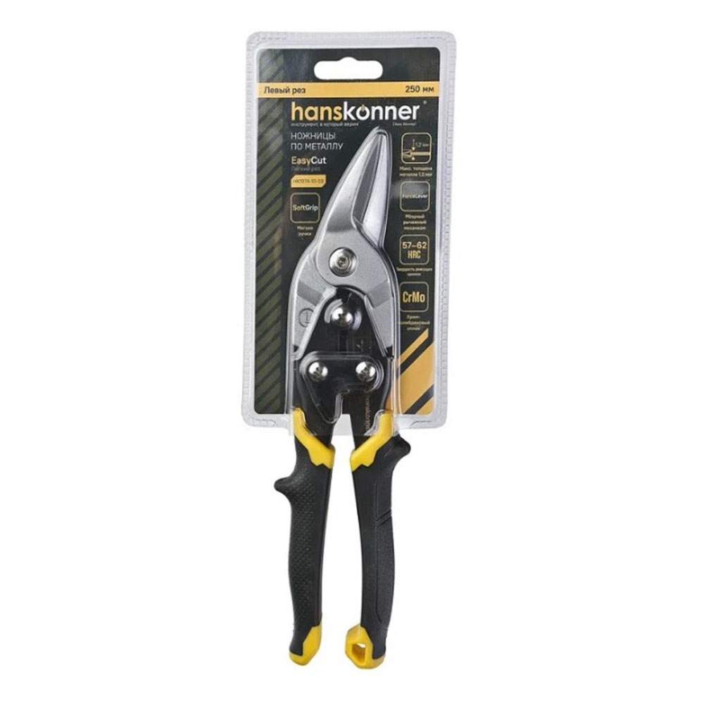 Ножницы по металлу левые Hanskonner - мощные и надежные ножницы по металлу EasyCut. Левый рез. Изготовлены из высококачественной хромомолибденовой стали с закалкой лезвий (57-62 HRC) для исключительной износостойкости. Режущие кромки с насечками обеспечивают надежный захват материала без проскальзывания. Эргономичные рукоятки гарантируют удобный и безопасный хват.