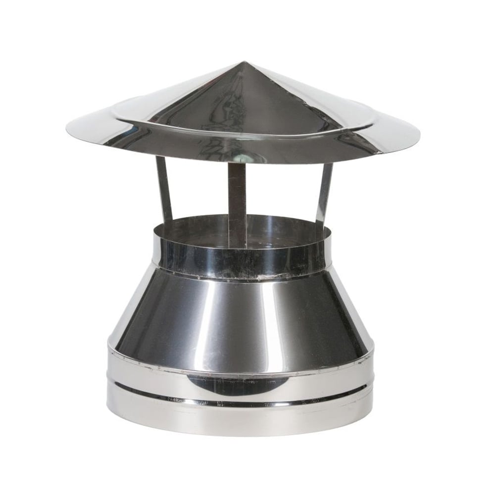 Зонт, нерж. марки стали AISI430 0.5мм 1 мм выполнен из высокотехнологичных материалов, имеет гладкую внутреннюю стенку, обеспечивающую оптимальную тягу и работоспособность. Сталь жаростойкая, имеет хорошее сопротивление коррозии. Подходит для конденсационных газовых котлов (60 гр), газовых котлов (110-180 гр), дизельных котлов (150-250 гр). Завершающий элемент. Служит для защиты отопительной системы от задувания ветра, попадания осадков.