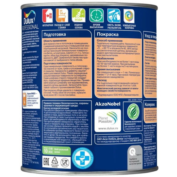 Краска сверхпрочная для стен и потолков ВС 2.5 л глубокоматовая DUFA Premium Keramilk Paint KeraMatt