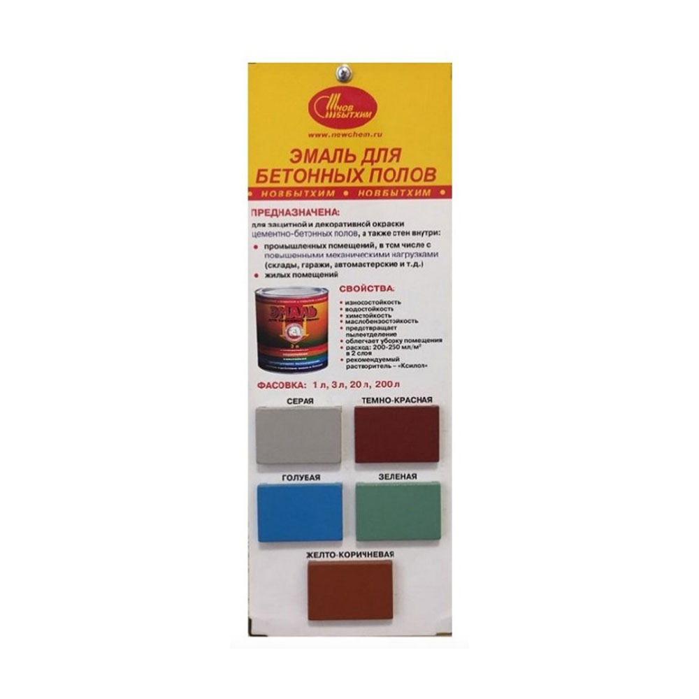Эмаль для бетонных полов Серая 20 л НОВБЫТХИМ - износостойкая эмаль, которая защищает и окрашивает цементно-бетонные стены и полы внутри жилых помещений, а также помещений с повышенными механическими нагрузками (промышленные, торговые, складские помещения, гаражи, автомастерские и т. д.). Выдерживает механические воздействия, возникающие при эксплуатации помещения (складские работы, движение автомобилей и погрузчиков, пешеходное движение, истирание и т. д.). Эмаль не пригодна для нанесения на поверхности, постоянно погруженные в воду, и для использования в помещениях, где применяются агрессивные жидкости и активные органические растворители. Непригодна для окраски металлических поверхностей. Окраска свежей цементной стяжки возможна не ранее чем через 28 суток.