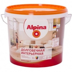 Alpina Долговечная интерьерная — шелковисто-матовая дисперсионная краска, которая благодаря огромному многообразию оттенков позволит каждому найти тон на свой вкус. Обладая превосходной способностью к очистке, эта краска позволяет создать в жилых и рабочих помещениях с высокими поверхностными нагрузками оптимальным образом защищённые и долговечные поверхности.
