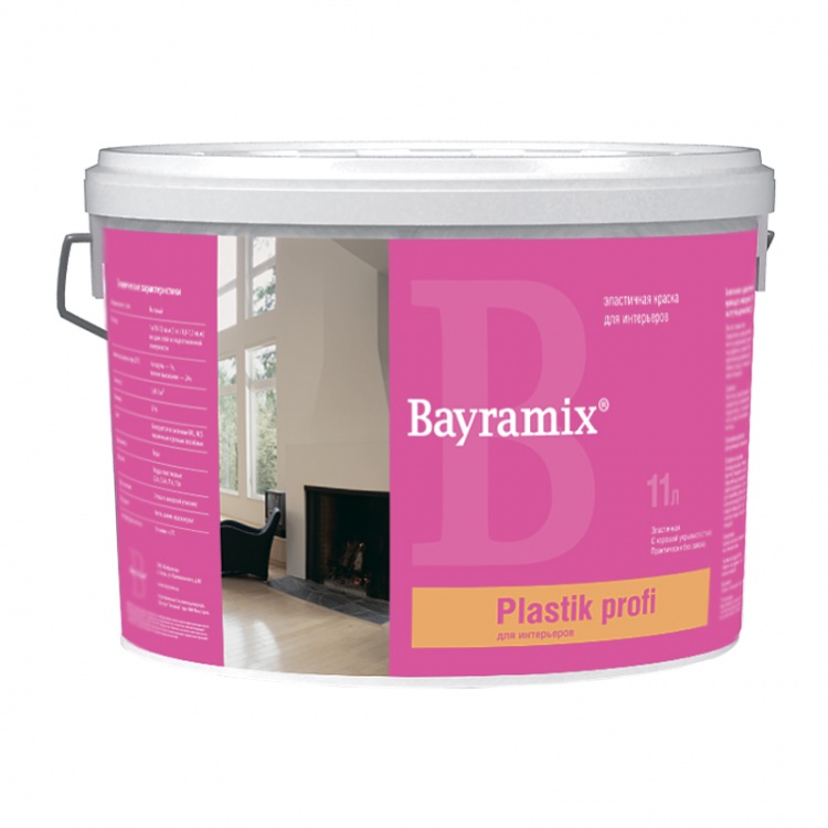Краска Байрамикс Пластик Профи представляет собой эластичную акриловую интерьерную краску для высококачественной отделки жилых помещений. Если Вы еще раздумываете над тем, какую краску для стен выбрать, советуем присмотреться к Plastic Profi от Bayramix. Эта влагостойкая, эластичная интерьерная краска не дает трещин и великолепно ложится на поверхность, образуя гладкую плёнку. Благодаря хорошей степени растяжения краска, натягиваясь, скрывает микротрещины и не дает образовываться новым. Краска экологически чистая и практически без запаха.
