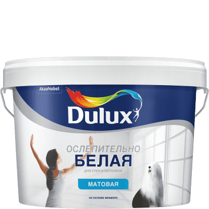 Матовая водно-дисперсионная краска для стен и потолков. За счет входящих в состав краски частиц натурального мрамора окрашенная поверхность сильнее отражает свет, помещение кажется светлее, а потолки — выше. Идеально подходит для ремонтных работ в помещениях с низкими потолками и малогабаритных квартирах. Образует гладкое покрытие, устойчивое к мытью с применением мягких моющих средств. Благодаря отличной укрывистости скрывает мелкие дефекты поверхности. Легко наносится, не образуя потеков.