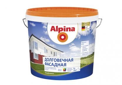 Alpina Долговечная фасадная - это оптимальное решение для долговременной защиты Вашего дома от ветра и погодных воздействий. Эту матовую и грязеотталкивающую дисперсионную краску можно легко использовать почти на всех основаниях. Заодно при покраске будут выравнены небольшие неровности штукатурки. Кроме того, краска Alpina Долговечная фасадная водоотталкивающая и предотвращат тем самым проникновение влаги в стены, будь то штукатурка, кирпич или бетон. Вы можите оформить Ваш дом согласно любым цветовым представлениям, не отказываясь при этом от ярких акцентов.