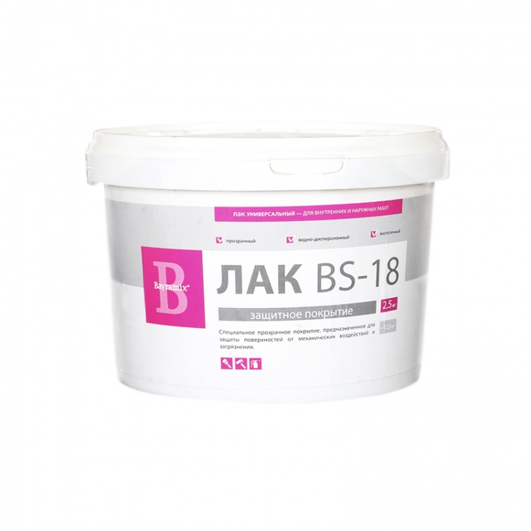 Лак "BS-18" – представляет собой однородную молочно-белую жидкость на основе сополимерной акриловой эмульсии.