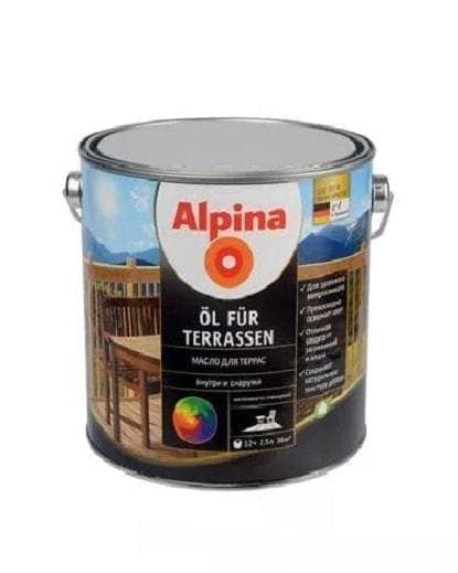 Alpina Öl für Terrassen ухаживает за древесиной и отлично защищает её от влаги и загрязнений. Этот материал стоек к истиранию, он освежает цвета и при этом сохраняет уникальную текстуру деревянных террас, полов и других предметов интерьера. Alpina Öl für Terrassen изготавливается на водной основе и поэтому может применяться без опасений для воздуха в помещениях, так как масло практически не имеет запаха как при его нанесении, так и при высыхании. Alpina Öl für Terrassen идеально для использования как для наружных так и для внутренних работ.
