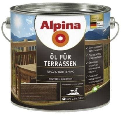 Alpina Öl für Terrassen ухаживает за древесиной и отлично защищает её от влаги и загрязнений. Этот материал стоек к истиранию, он освежает цвета и при этом сохраняет уникальную текстуру деревянных террас, полов и других предметов интерьера. Alpina Öl für Terrassen изготавливается на водной основе и поэтому может применяться без опасений для воздуха в помещениях, так как масло практически не имеет запаха как при его нанесении, так и при высыхании. Alpina Öl für Terrassen идеально для использования как для наружных так и для внутренних работ.