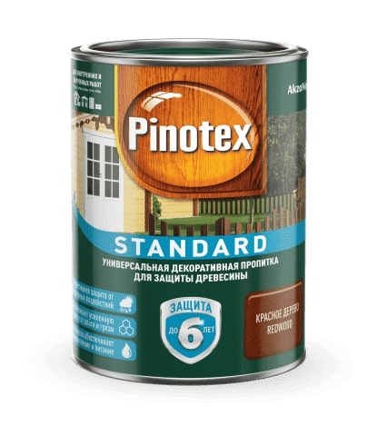 Пинотекс стандарт универсальная декоративная пропитка для защиты древесины. Образует высокоэластичное гладкое покрытие, устойчивое к перепадам влажности и температуры. Пропитка легко наносится и быстро впитывается в поверхность древесины, образуя полуматовое покрытие с высоким декоративными и защитыми свойствами.